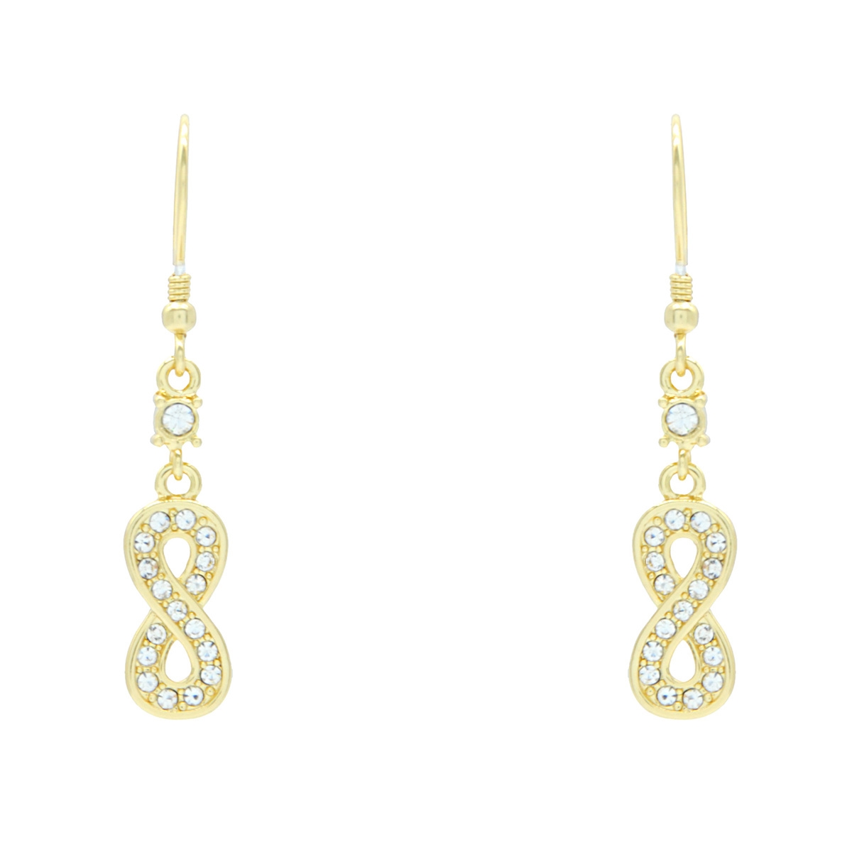 Refined beauty at its best, our "Brilliance Forever" earrings boast a timeless infinity symbol intertwined with sleek medal detailing and shimmering Swarovski crystal for the perfect touch of sparkle. Sterling silver hooks. Nickel and lead free jewellery.