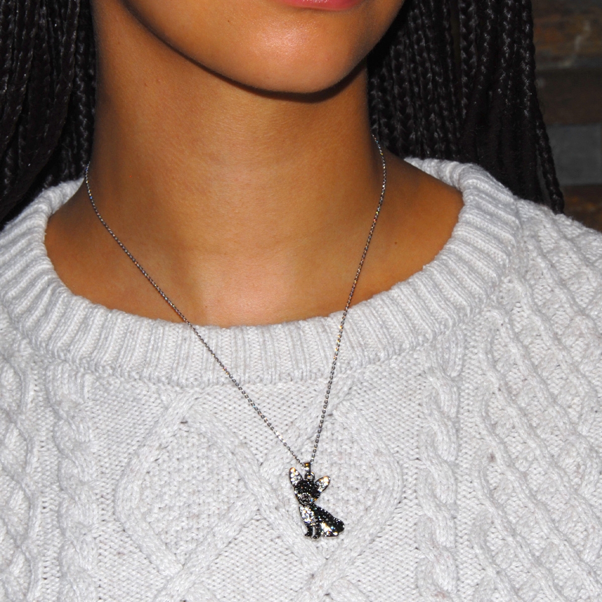 All suited up in his jet hematite and clear Swarovski crystal coat, our "Chihuahua Love" pendant is guaranteed to bring smiles to the faces of all the puppy lovers out there! 18" designer chain with 2" extension. Nickel and lead free jewellery.