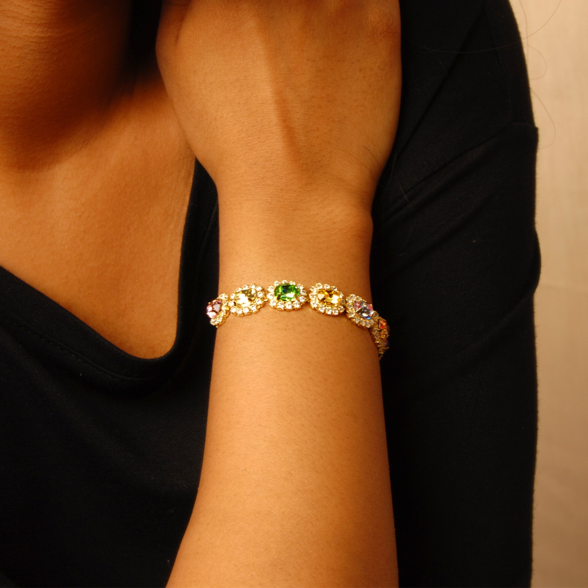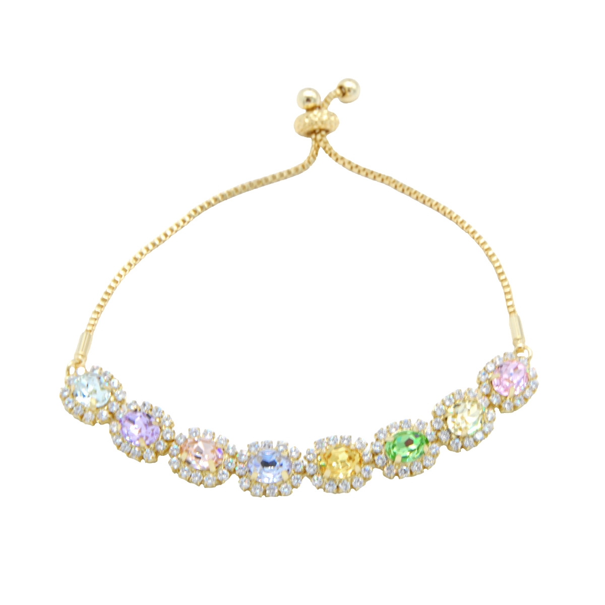 Full of soft color and timeless detailing our "Color Me Gorgeous" bracelet is a must-have for your collection. Featuring a beautifully handcrafted setting, this rich design showcases vivid FAC crystal and an easy-to-wear drawstring closure. Nickel and lead free jewellery.