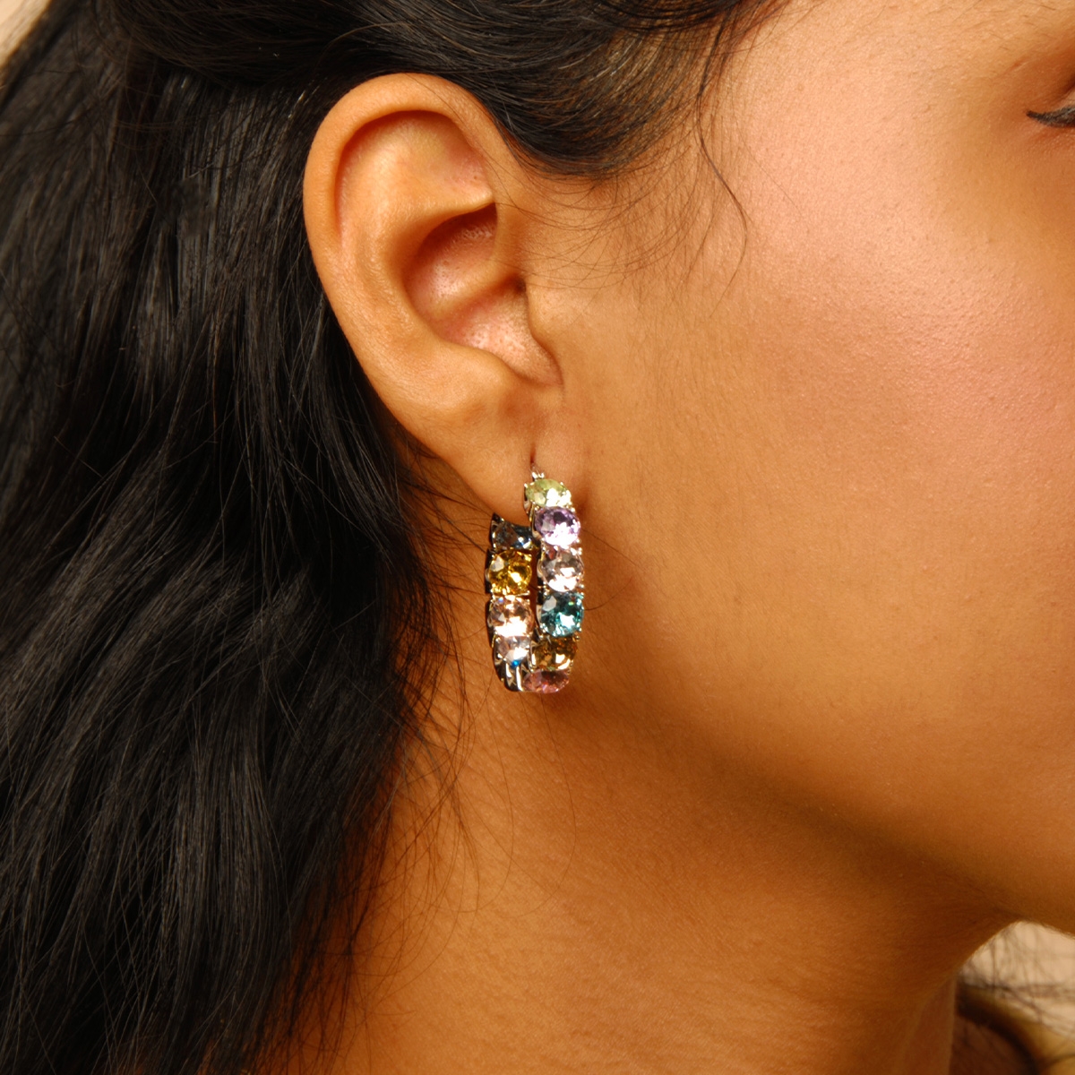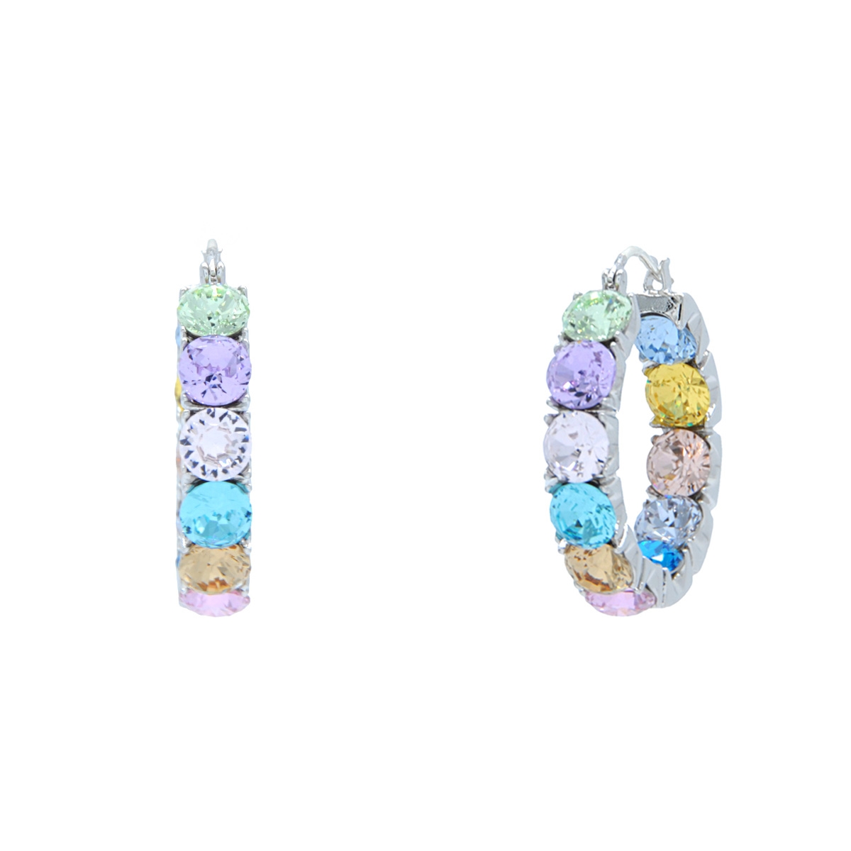 Full of soft color and timeless detailing our "Color Me Gorgeous" earrings are a must-have for your collection. Featuring a beautifully handcrafted setting, this rich hoop design showcases vivid FAC crystal . Nickel and lead free jewellery.