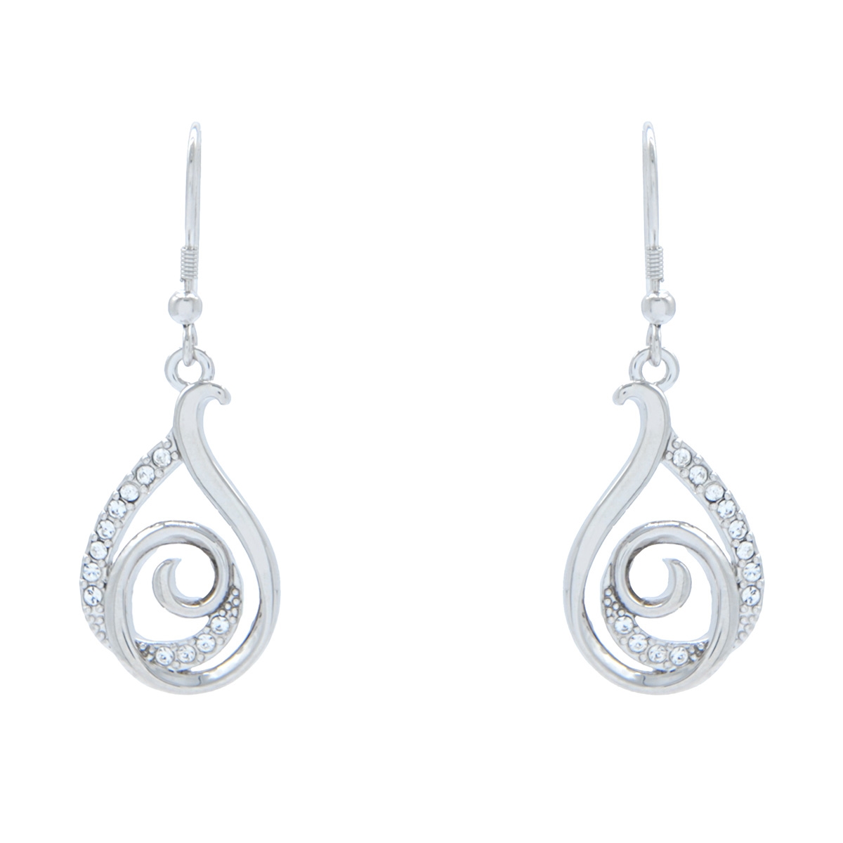 Sleek and beautifully modern, our "Contemporary Brilliance" earrings feature a stylish swirl design exquisitely accented with gorgeous Swarovski crystals to make these fashion accessories the easy choice for your everyday FAC go-to! Sterling silver hooks. Nickel and lead free jewellery.