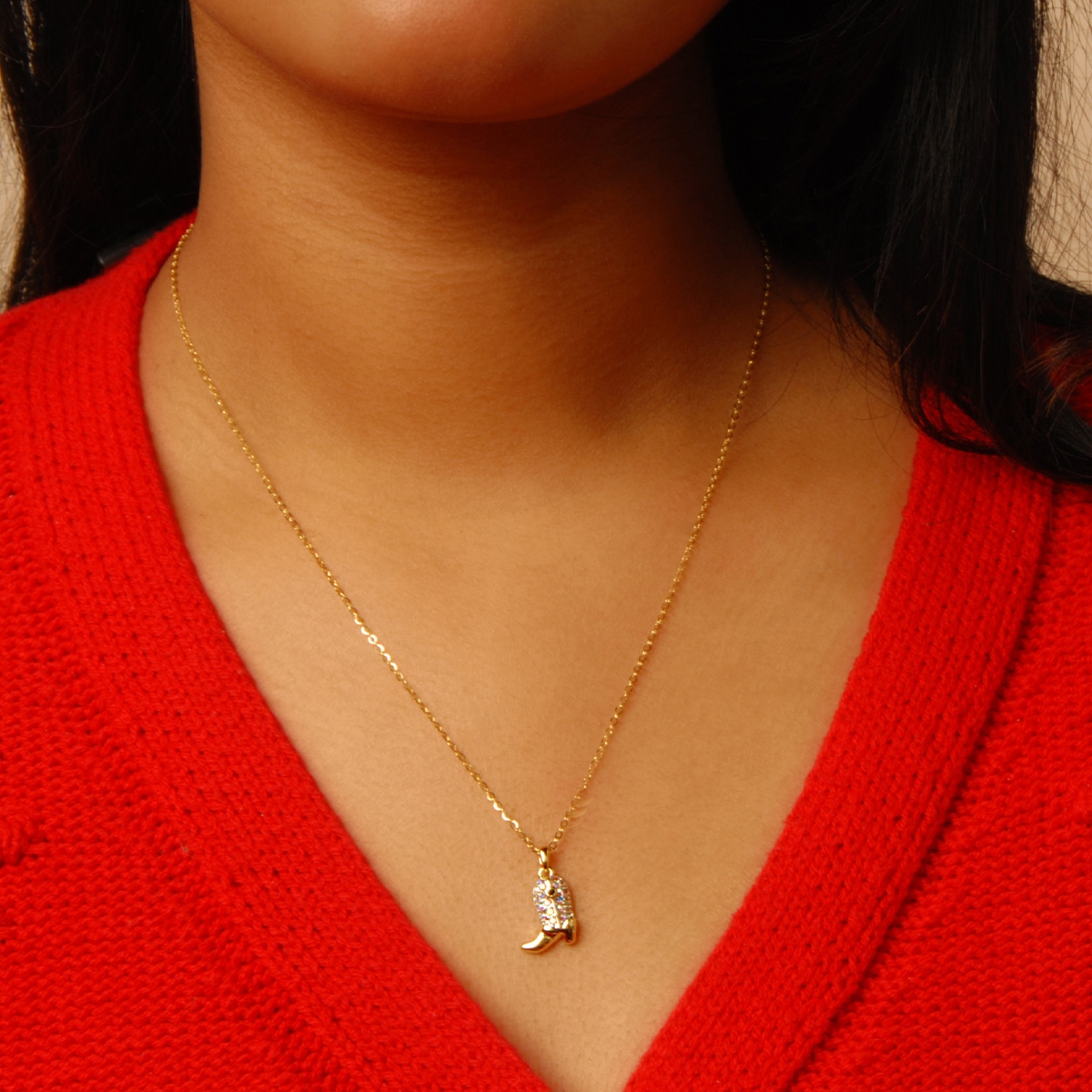 Fun and stylish with a flare for fashion, our playful "Cowgirl Sparkle" boot" pendant on a sleek designer chain is studded with Swarovski crystal to shimmer with your every move. Nickel and lead free jewellery.