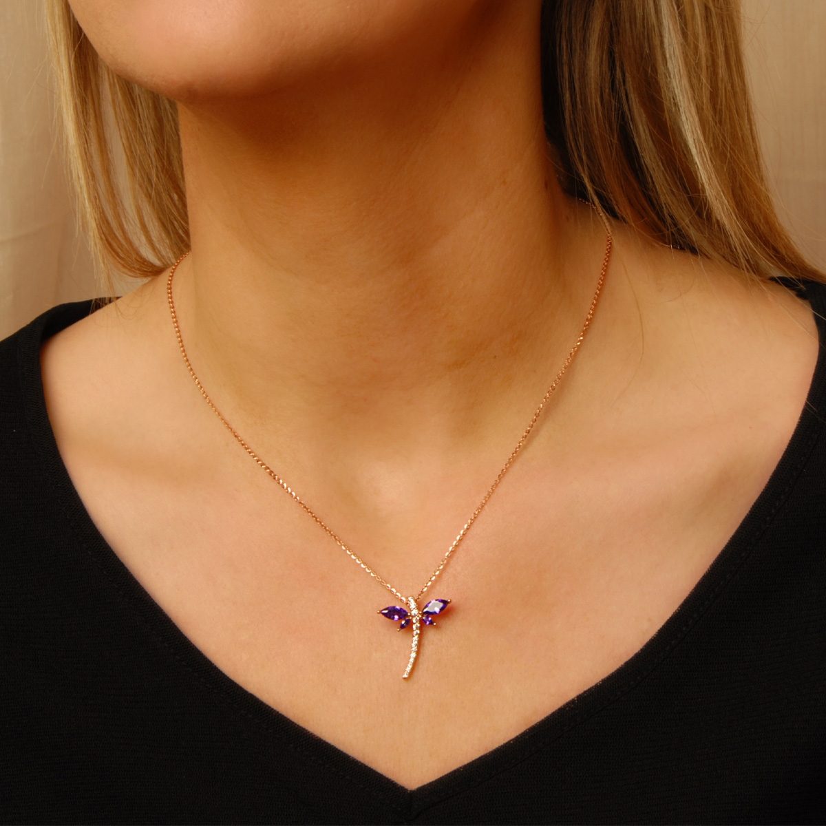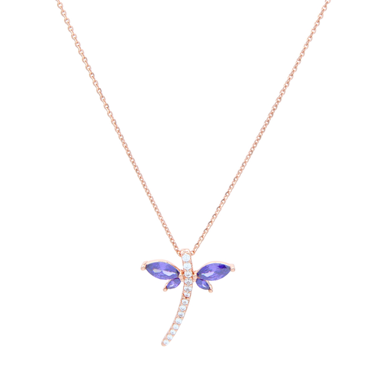Inspired by one of nature's most lovely creatures, our "Dragonfly Dreams" neckpiece beautifully catches the likeness, flaunting a whimsical design embellished with bold purple and shimmering clear AAA cubic zirconia, suspended from a sleek 17” designer chain. Nickel and lead free jewellery.