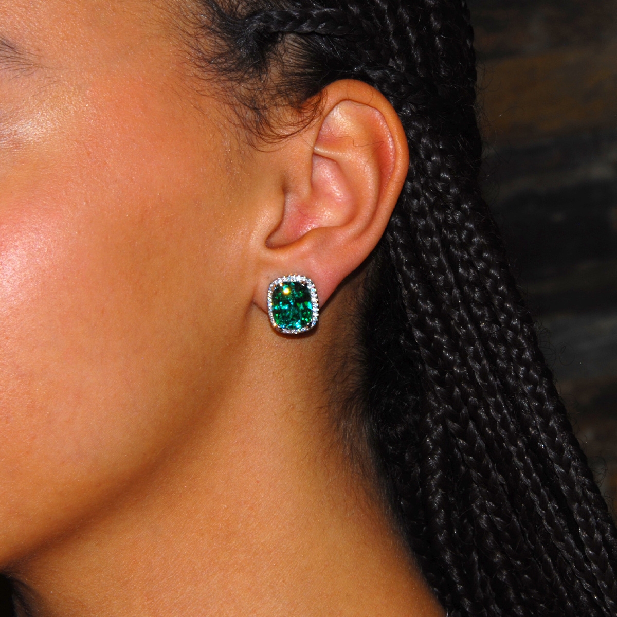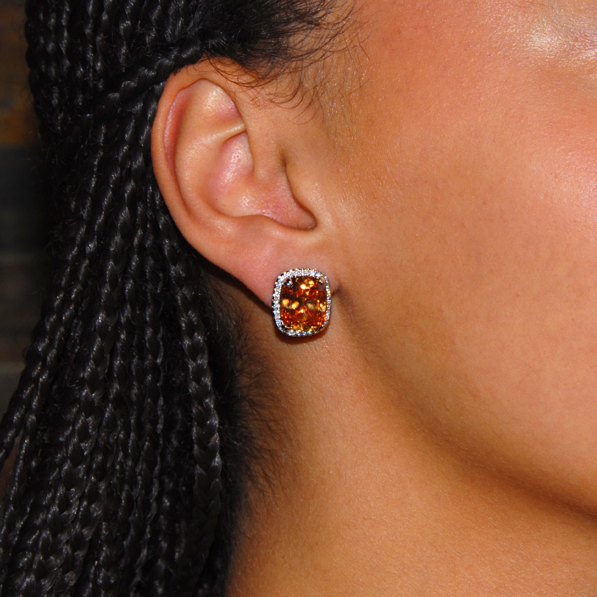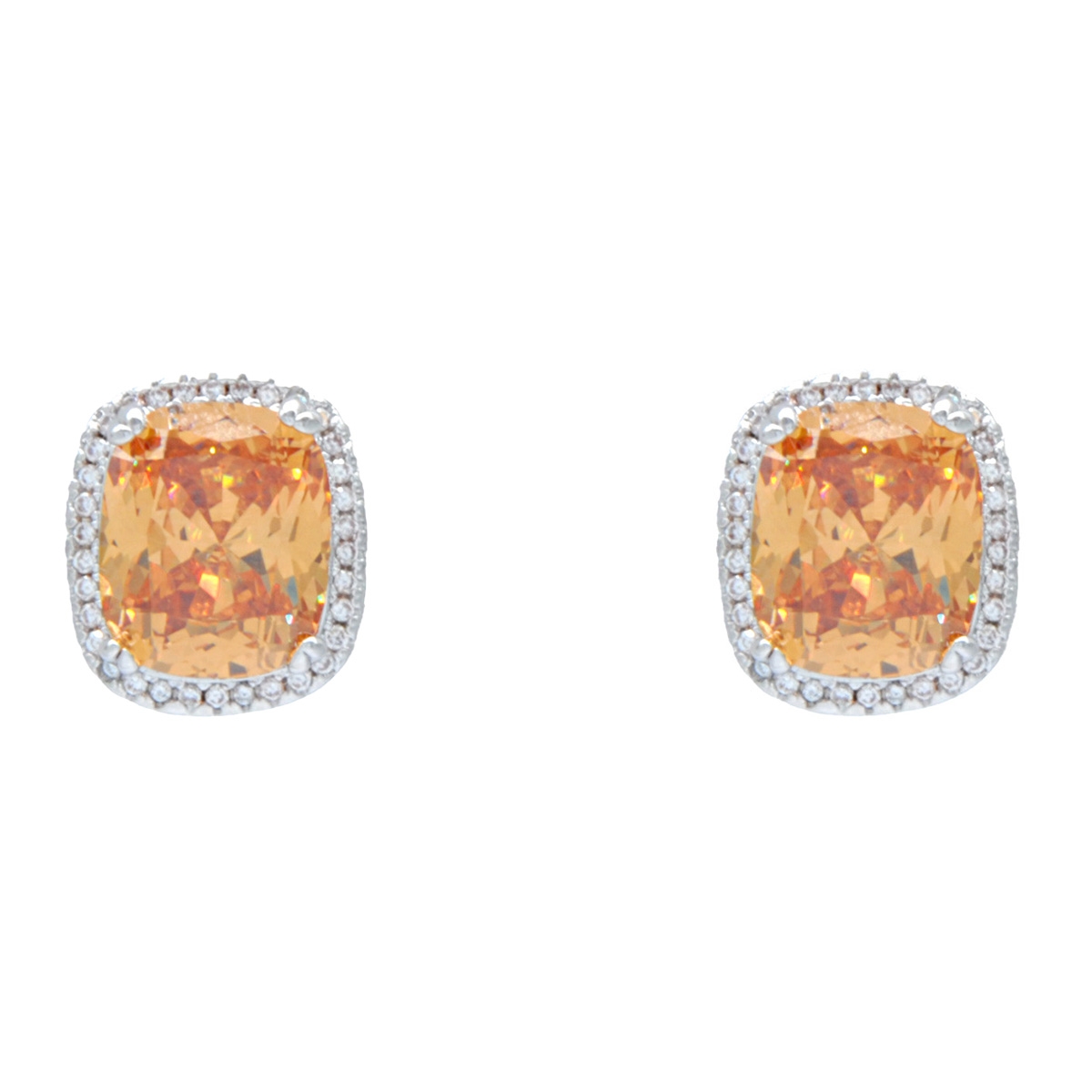 Add some smooth, sophisticated sparkle to your look by adorning a touch of "Elegance & Glam"! Beautifully faceted cubic zirconia captures the light with impressive size and composition nestled in a row of clears and a sleek rhodium-finish to create a classic upgrade in contemporary style. Sterling silver posts. Nickel and lead free jewellery.