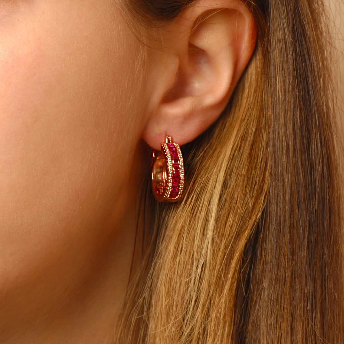 Our gorgeous, on-trend "Enhanced Glamour" hoop earrings boast an elevated design perfectly embellished with exquisite AAA quality cubic zirconia rounds and baguettes, making them a beautiful fashion accessory for your day-to-night look! Sterling silver posts. Nickel and lead free jewellery.