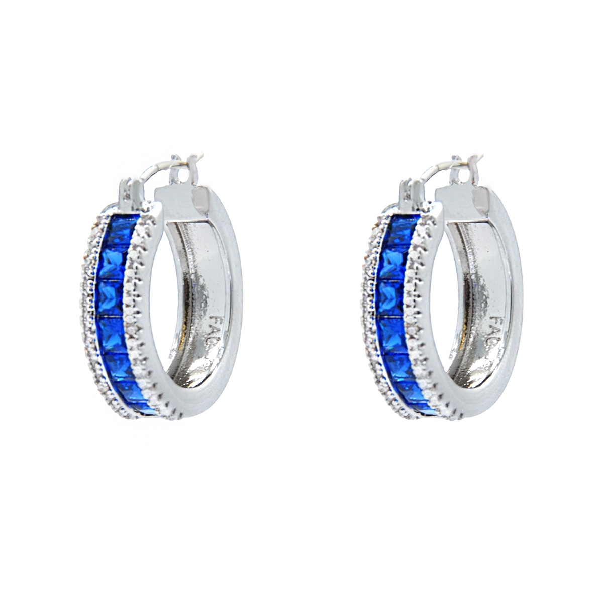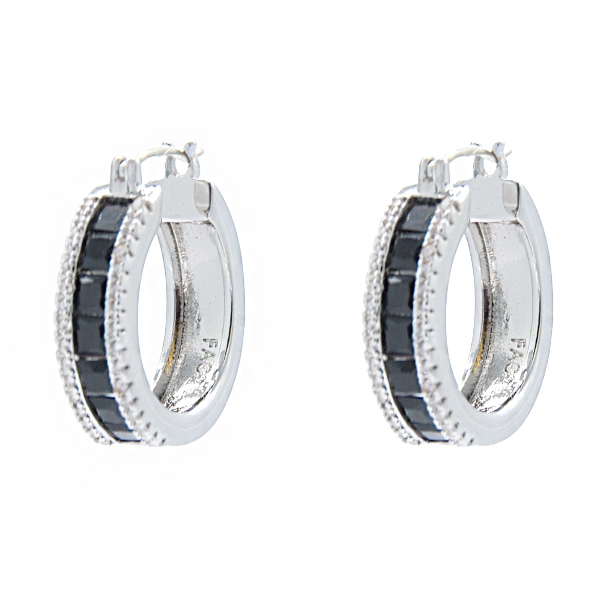 Our gorgeous, on-trend "Enhanced Glamour" hoop earrings boast an elevated design perfectly embellished with exquisite AAA quality cubic zirconia rounds and baguettes, making them a beautiful fashion accessory for your day-to-night look! Sterling silver posts. Nickel and lead free jewellery.