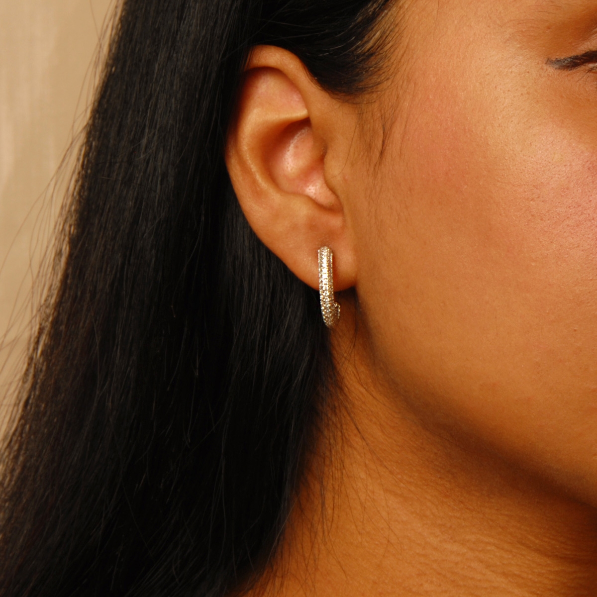 Classy and timeless, our "Extra Fine" earrings boast a sleek half-hoop design studded with dozens of dainty AAA cubic zirconia to give you a beautiful fashion staple. Sterling silver posts. Nickel and lead free jewellery.