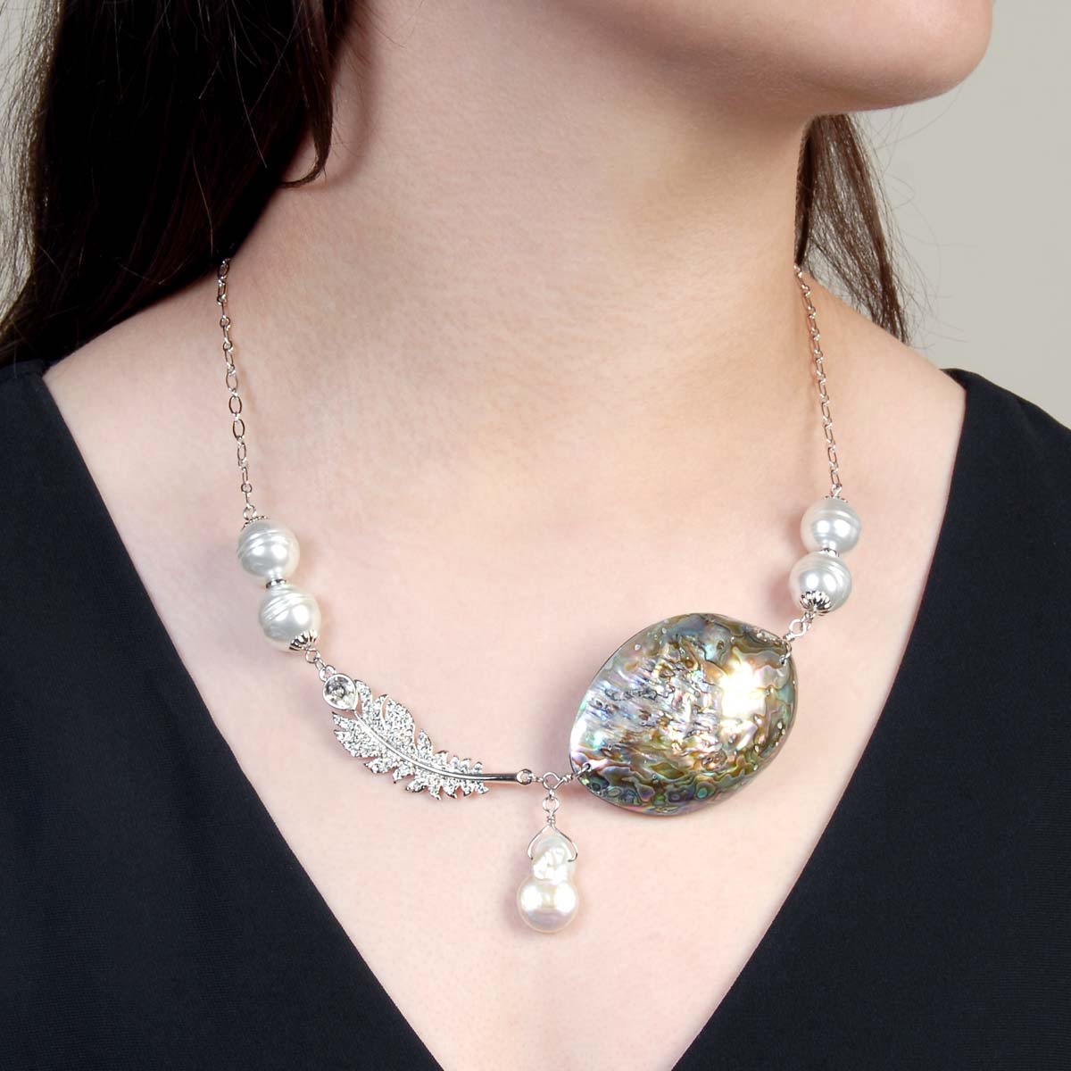 Bring instant sophistication and elegance to your look when you wear our "Fashion Fierce" neckpiece. This fashion forward accessory flaunts a stunning feather Swarovski crystal studded pendant with sensational abalone shell and classic mother of pearl suspended from sleek 20" designer chain to create a legendary Fifth Avenue Collection design. Nickel and lead free jewellery.