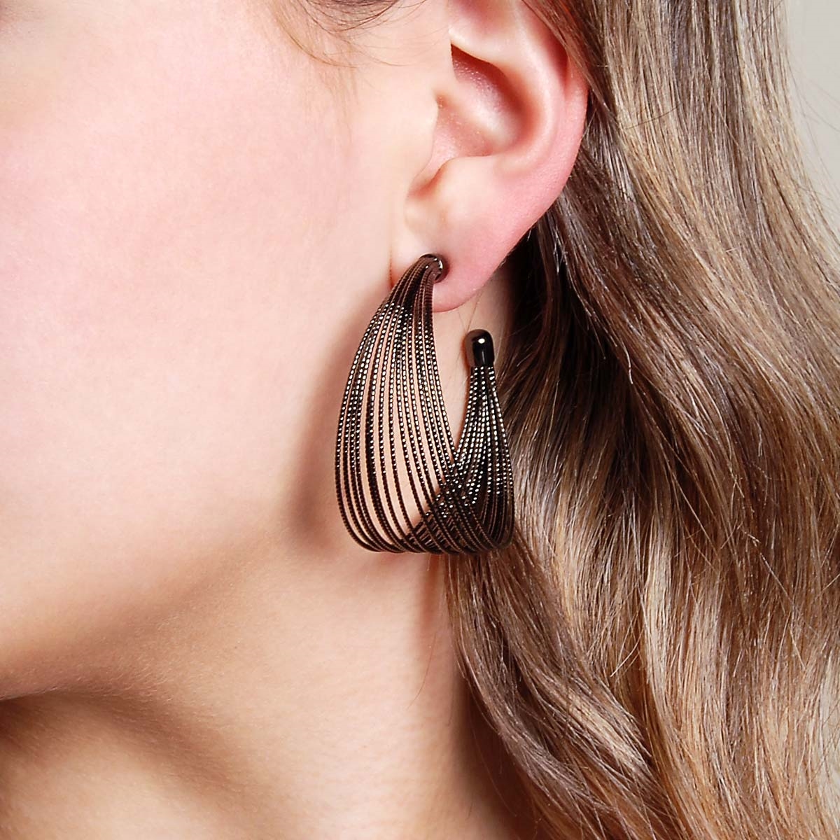 Our gorgeous statement "Fashion Rays" hoop earrings flaunt a stunning unique multi-layered design to make this fashion accessory perfect for any occasion! Sterling silver posts. Nickel and lead free jewellery.