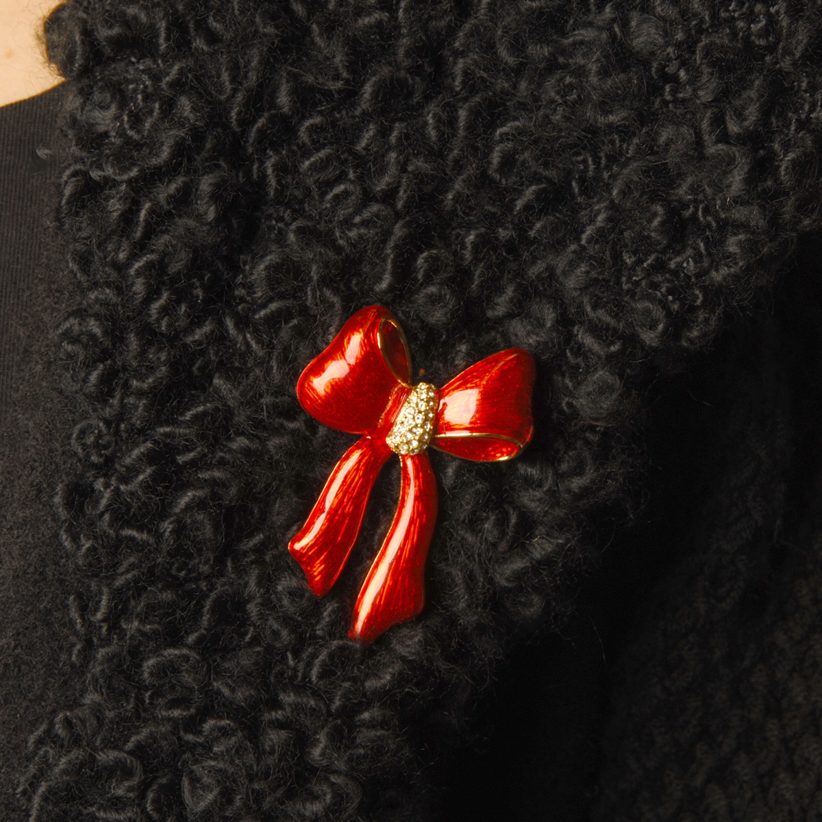 The magic of the season is captured in our vibrant "Festive Ties" pin! Fifth Avenue Collection's exclusive 2025 collector's design is a classic yet trendy hand-painted red enamel bow trimmed in a gleaming gold finish, and centered with sparkling clear Swarovski crystal to add style and charm to any outfit. Nickel and lead free jewellery.