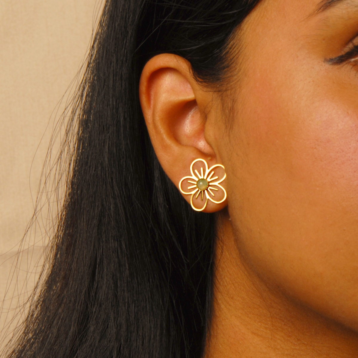 These beautiful and sweet "Genuine Bloom" earrings boast an intricate floral outline with a gorgeous genuine gemstone center, giving you the perfect feminine finishing touch to your look. Sterling silver posts. Nickel and lead free jewellery.