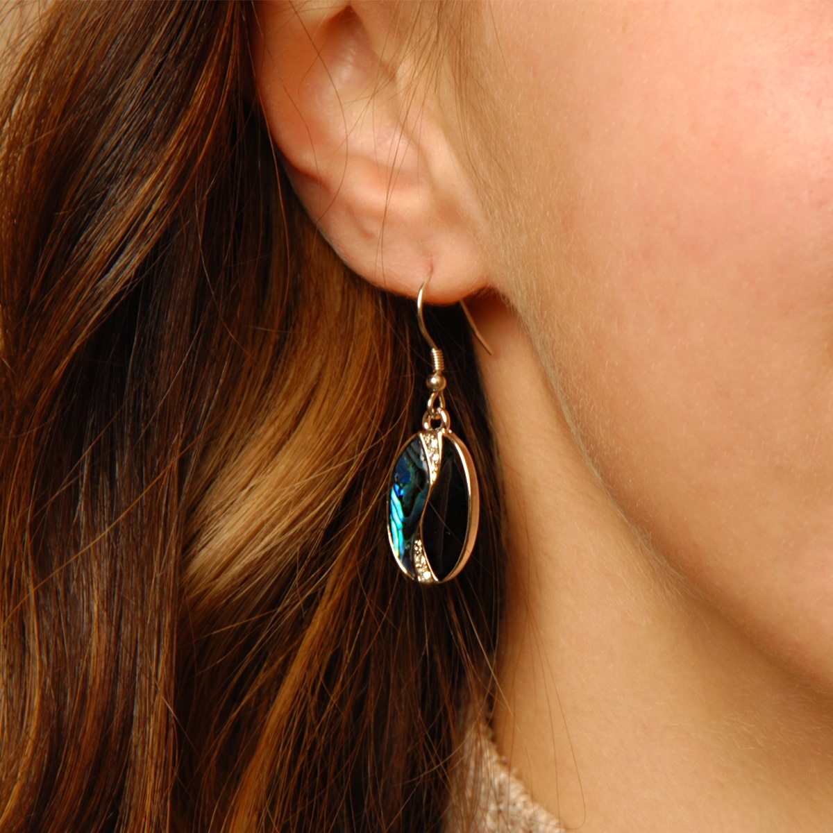 Beautiful and inspiring our stunning "Genuinely Mixed" hook earrings boasts a rich and colorful combination of genuine paua shell and gleaming black onyx with a touch of Swarovski crystal shimmer. Sterling silver hooks. Nickel and lead free jewellery.