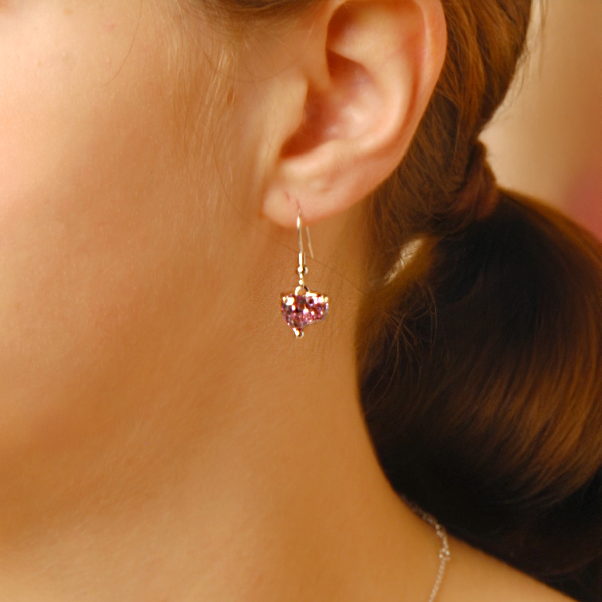 Classically romantic and perfectly timeless, our "Graceful Love" earrings shimmer with stunning purple AAA cubic zirconia hearts. Sterling silver hooks. Nickel and lead free jewellery.