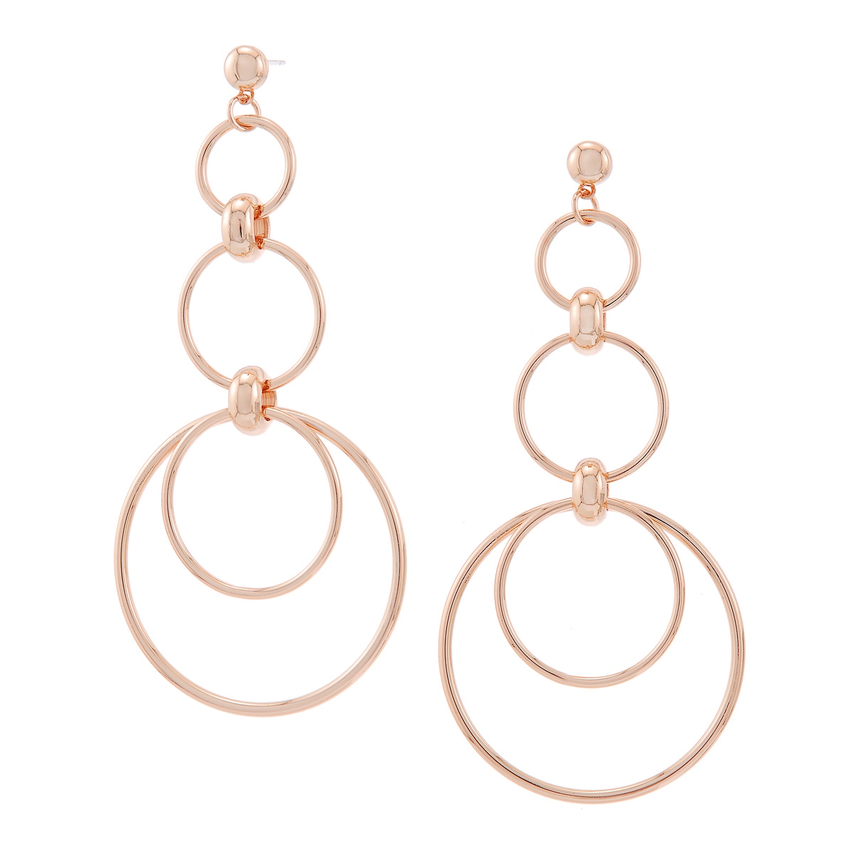 Our bold geometrically inspired "Inner Circle" stud earrings boast a unique cascading design of sleek modern hoop detailing creating a stunning fashion statement. Sterling silver posts. Nickel and lead free jewellery.