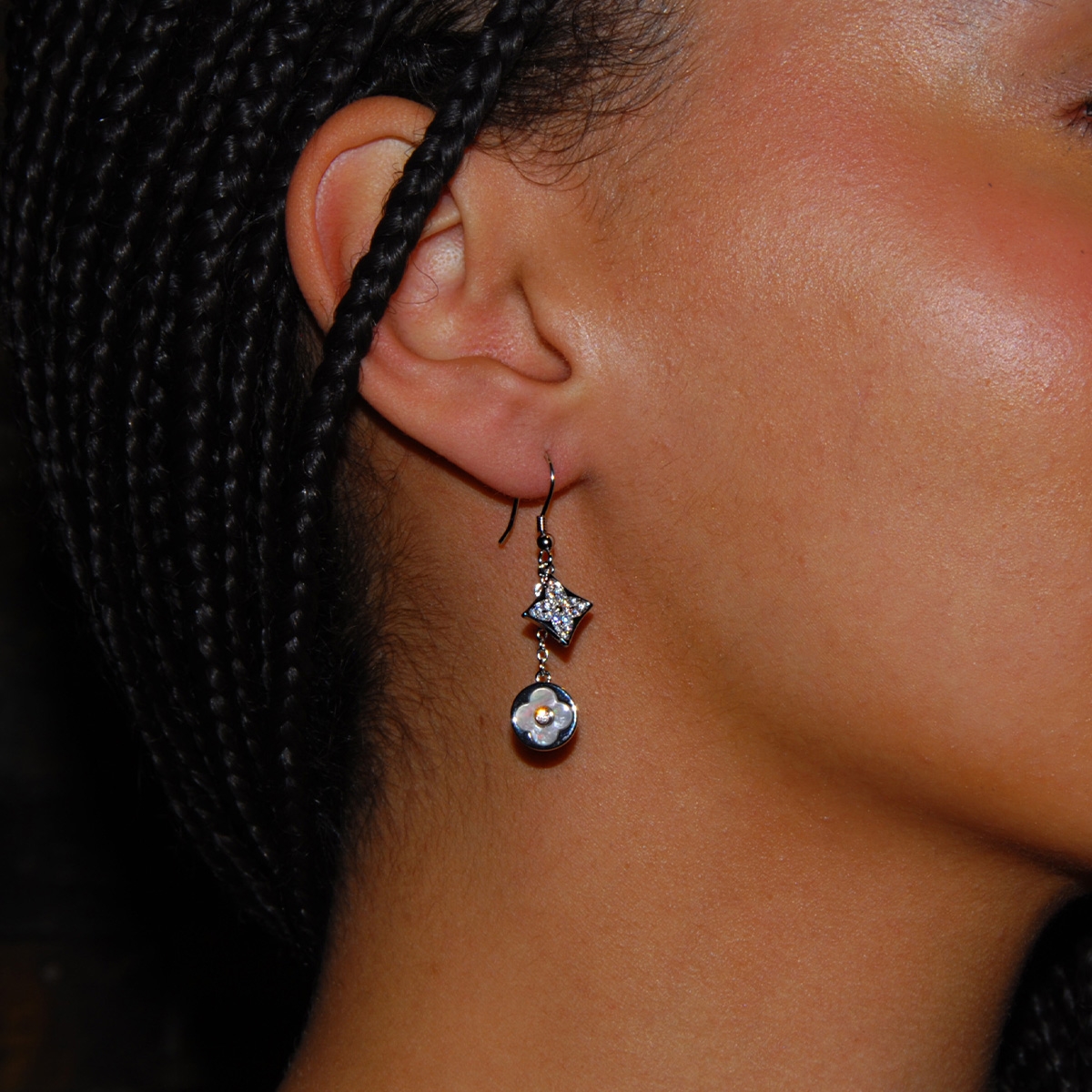 Accent your beautiful style when you wear our "Intricate Luxury" earrings. Boasting stunning mother of pearl and sparkling clear Swarovski crystal in a geometric drop design, these exquisite, handmade fashion accessories are a must to add to your collection! Sterling silver hooks. Nickel and lead free jewellery.