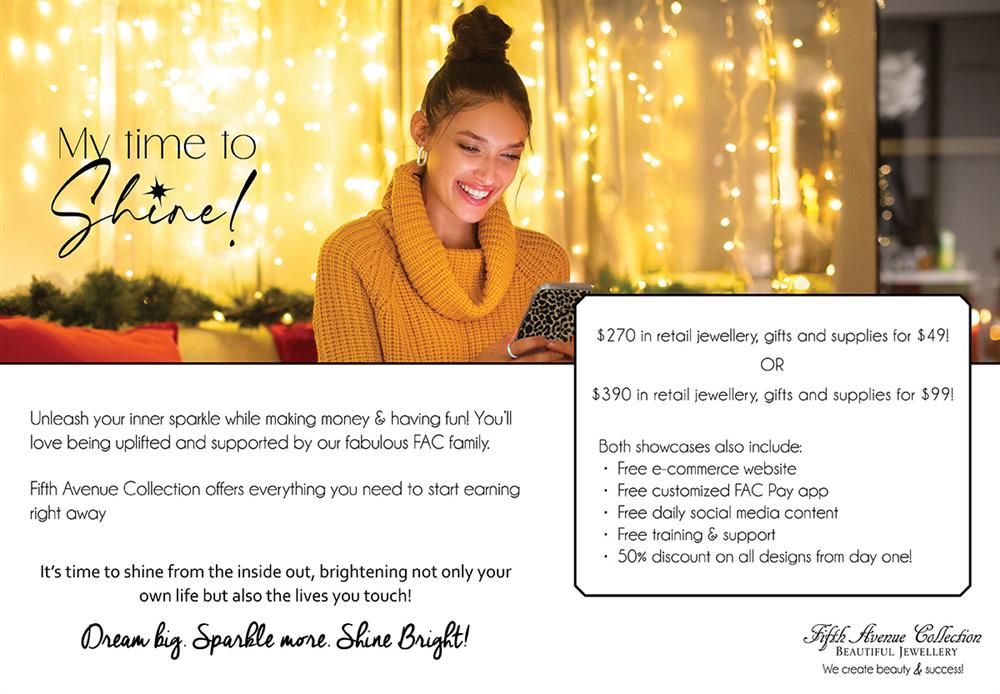 Become a jewellery stylist with Fifth Avenue Collection and be your own boss, selling our gorgeous designs in-home, on-the-go, through social media and using your free personal website. Full-time, part-time, anytime... start earning right away with a 50% commission on every sale, plus monthly bonus cheques for team building, recognition and impressive rewards.