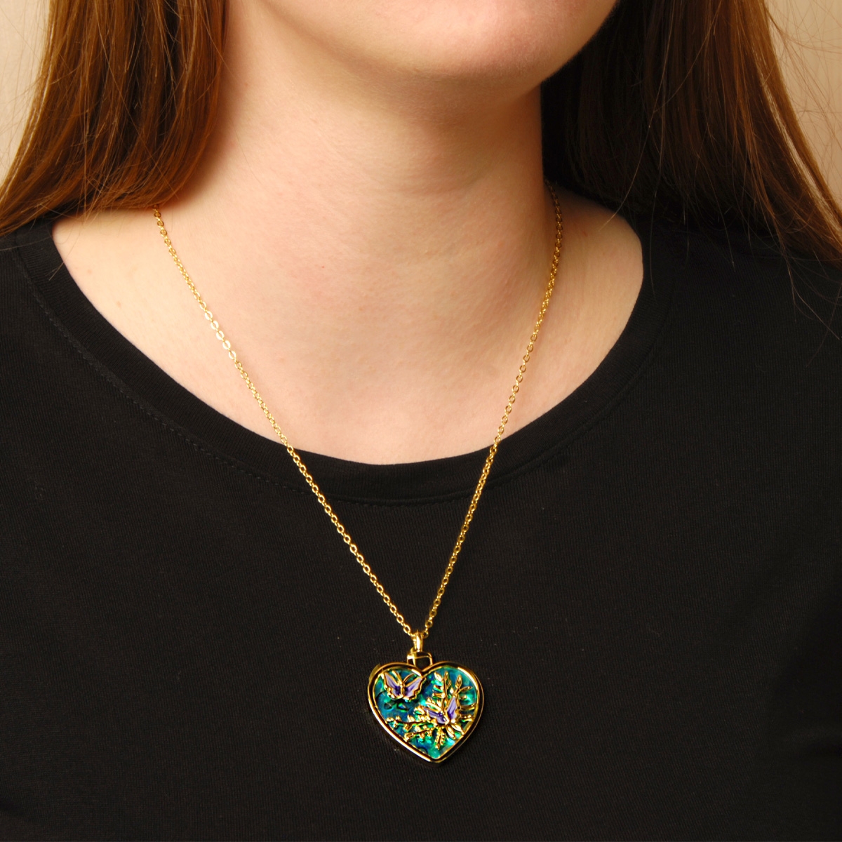 Immaculately designed, our "Luminous Flight" neckpiece flaunts a stunningly unique paua shell heart pendant accented with intricate hand-painted enamel butterflies, suspended from a sleek 19” designer chain to add a perfect touch of natural elegance to your look. Nickel and lead free jewellery.