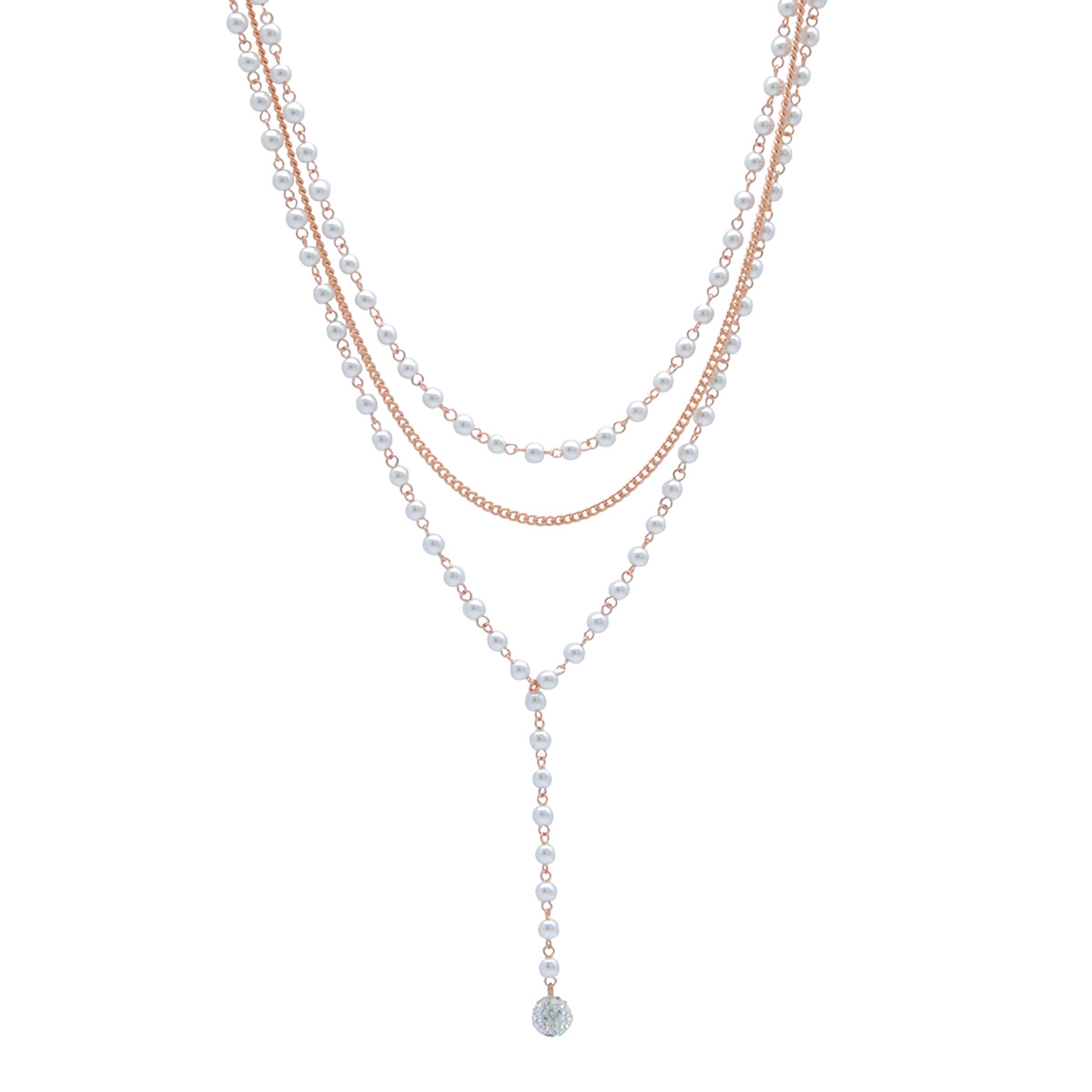 Refined elegance at its best, our "Lustrous & Fine" neckpiece boasts two layers of timeless pearls, accompanied by fine designer chain, completed with a luminous and trendy center drop ending in a sparkling Swarovski crystal ball for the perfect touch of sparkle. 16” neckpiece with 2” extension. Nickel and lead free jewellery.