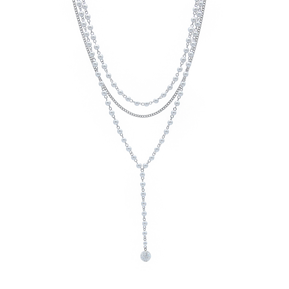 Refined elegance at its best, our "Lustrous & Fine" neckpiece boasts two layers of timeless pearls, accompanied by fine designer chain, completed with a luminous and trendy center drop ending in a sparkling Swarovski crystal ball for the perfect touch of sparkle. 16” neckpiece with 2” extension. Nickel and lead free jewellery.