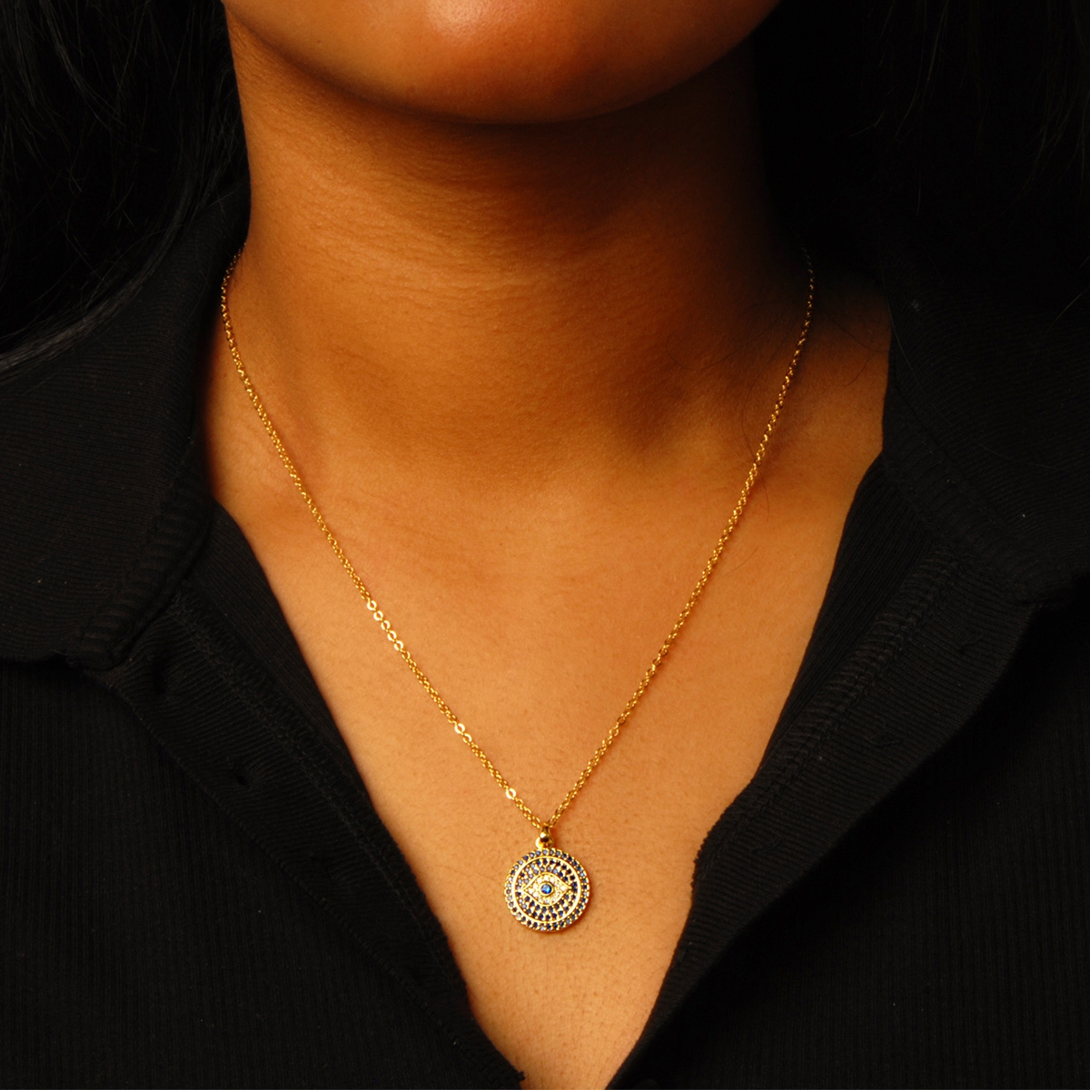 Meaningful and chic, our beautiful "Mesmerizing Elegance" neckpiece showcases an evil eye design encrusted in shimmering AAA cubic zirconia suspended from a sleek 17" designer chain, designed to protect the wearer from negative energy and bad luck. Nickel and lead free jewellery.