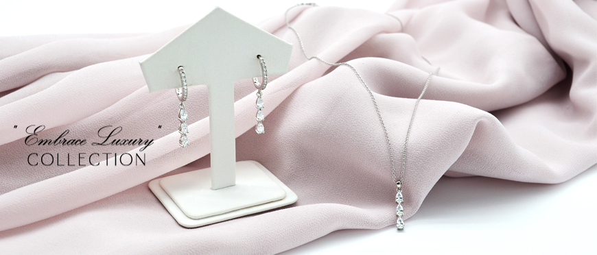 Sparkle inspired, you'll "Embrace Luxury" with this delicately chic design. Showcasing three stunning teardrops of AAA cubic zirconia on a sleek 18" designer chain, this design is simply divine! Nickel and lead free jewellery.
