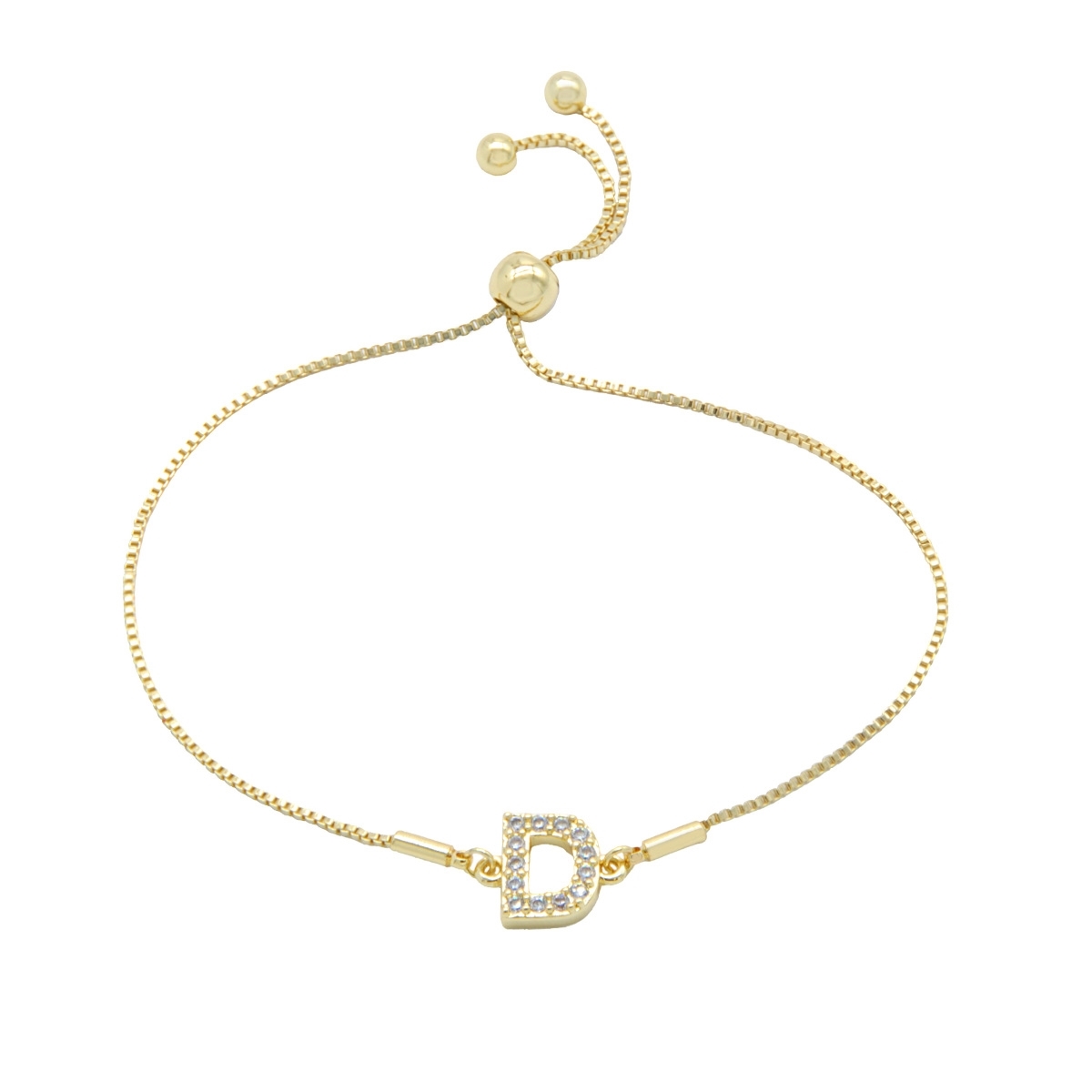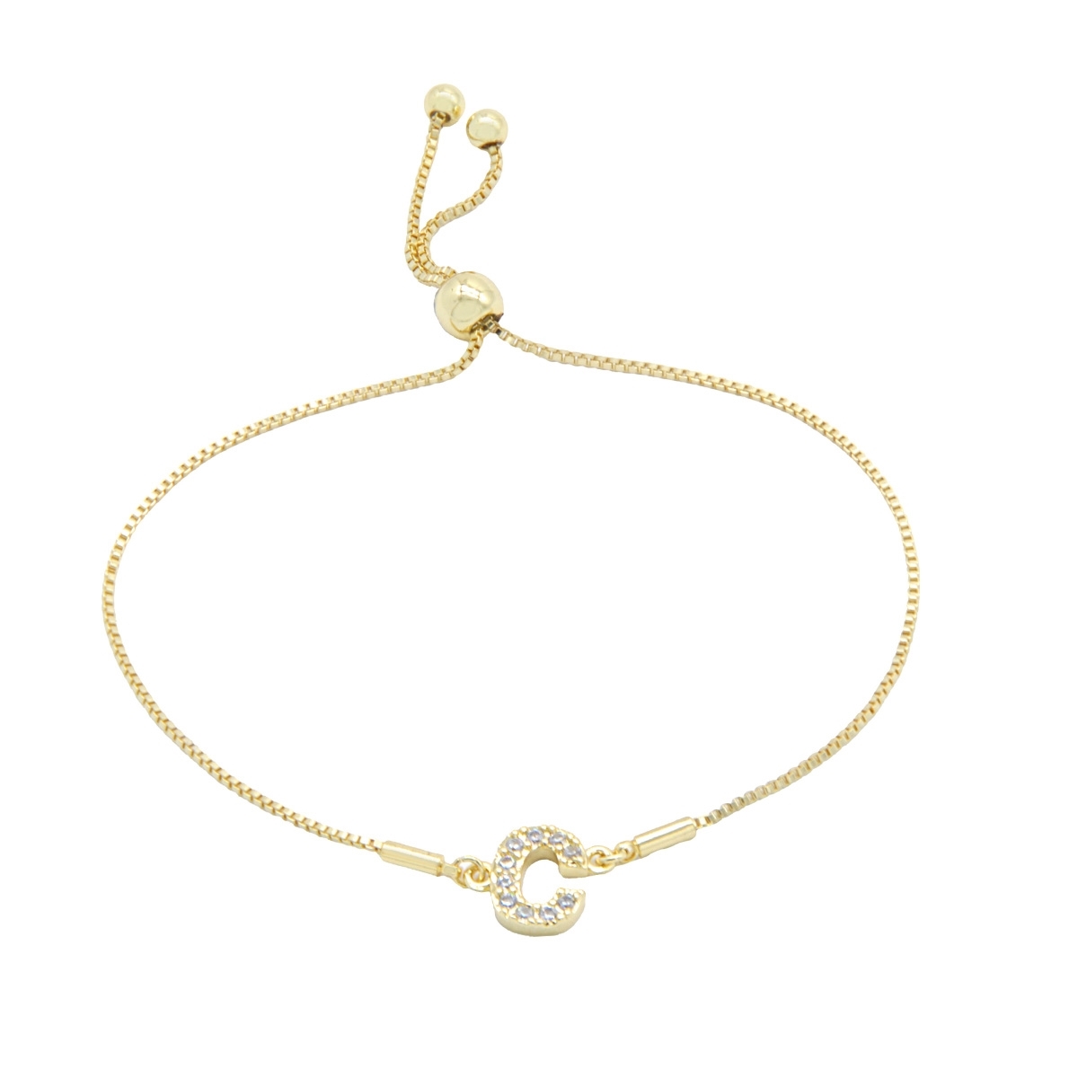 Endlessly wearable, our pretty “Personalized Sparkle” initial bracelet is the perfect everyday go-to FAC accessory. This stunning combination of gleaming gold finish and sparkling AAA cubic zirconia is the perfect way to personalise your look. 7.5" drawstring bracelet. Nickel and lead free jewellery.