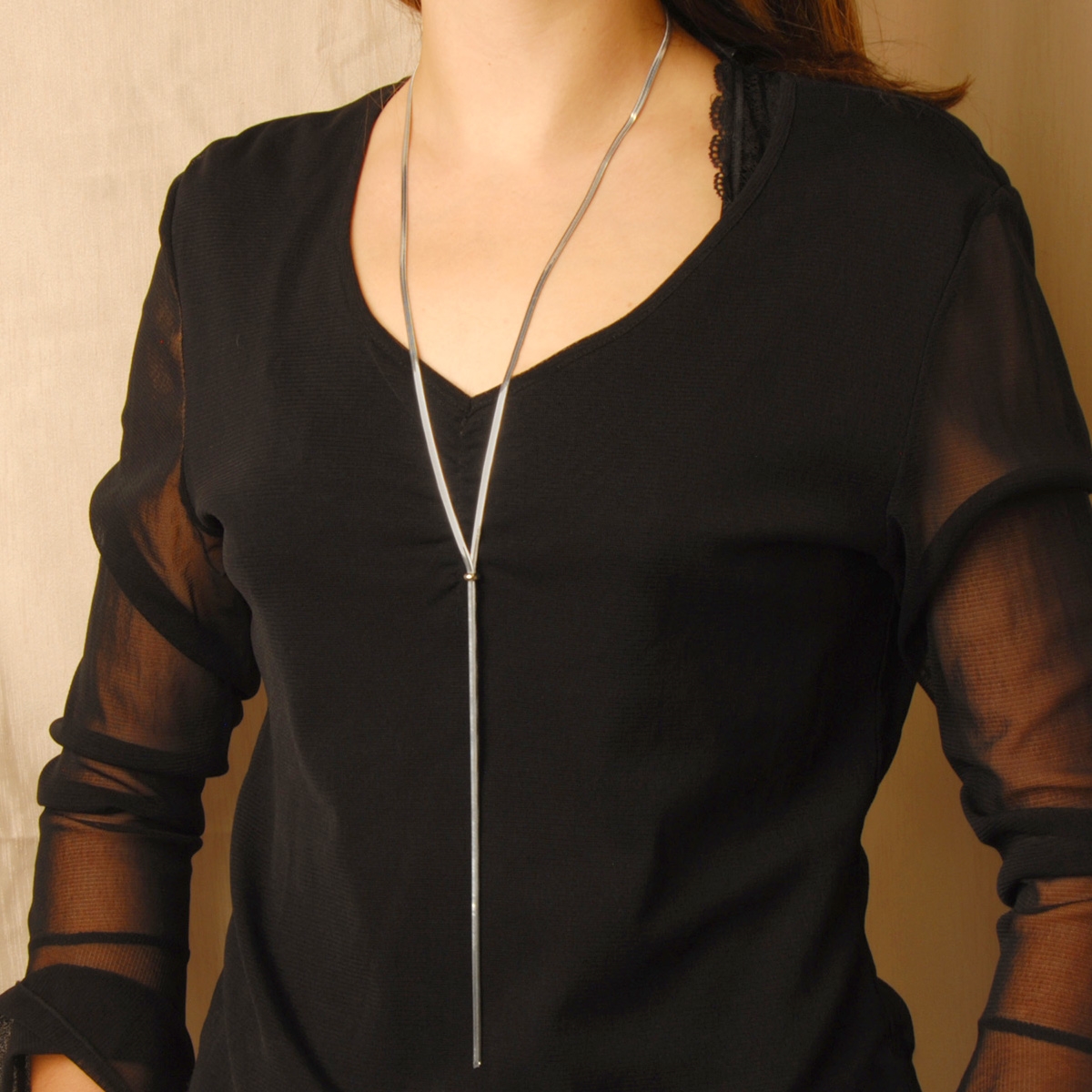 Our glimmering "Polished Lines" neckpiece flaunts a sleek on-trend "Y" shaped design. Complete with a gleaming metallic slide, this adjustable fashion accessory is simple in design yet sure to make a bold statement. 43" neckpiece. Nickel and lead free jewellery.