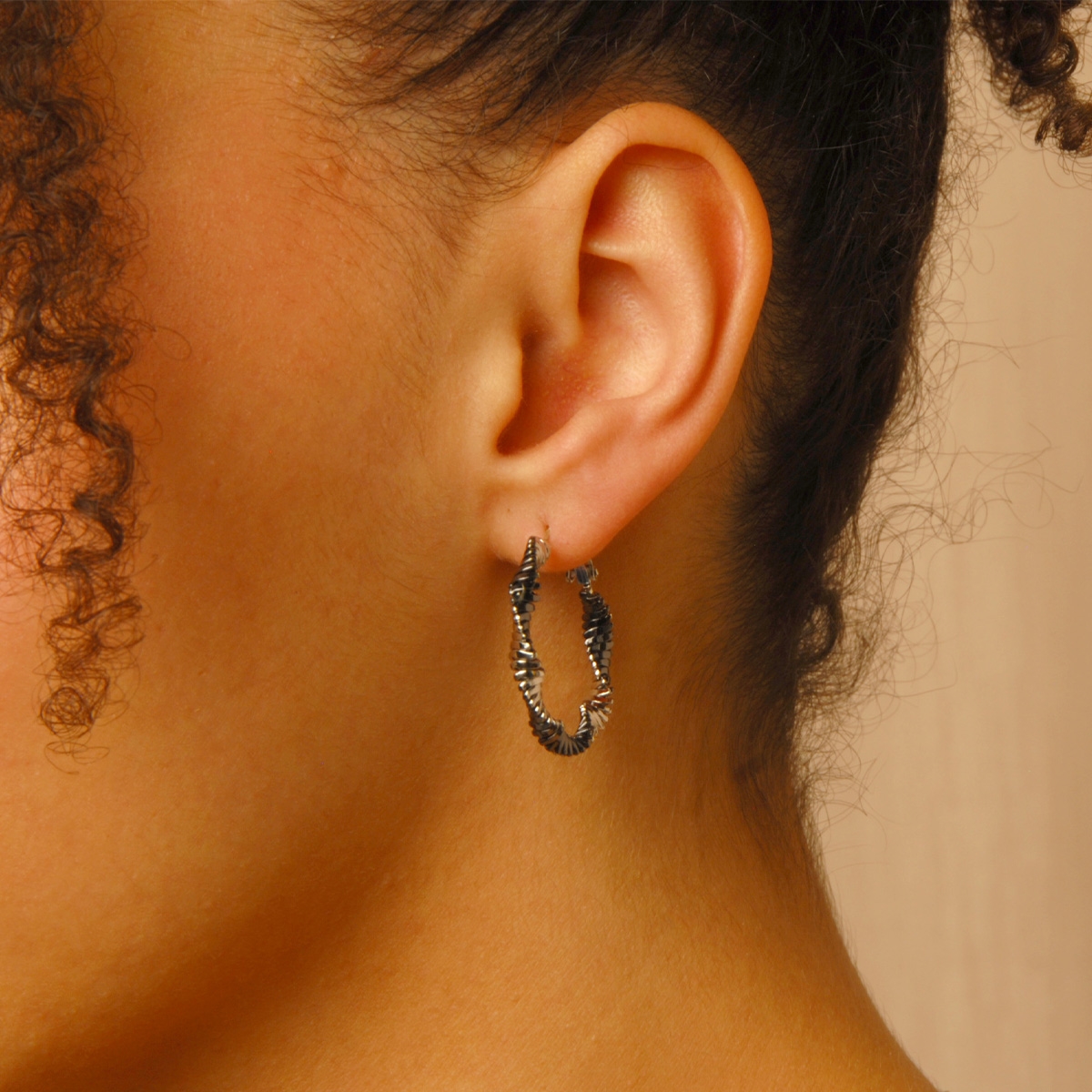 Flaunting a unique eye-catching twisted aesthetic, our "Pretty Curves" two-tone hoop earrings are the perfect fashion accessories to compliment your everyday look. Sterling silver posts. Nickel and lead free jewellery.