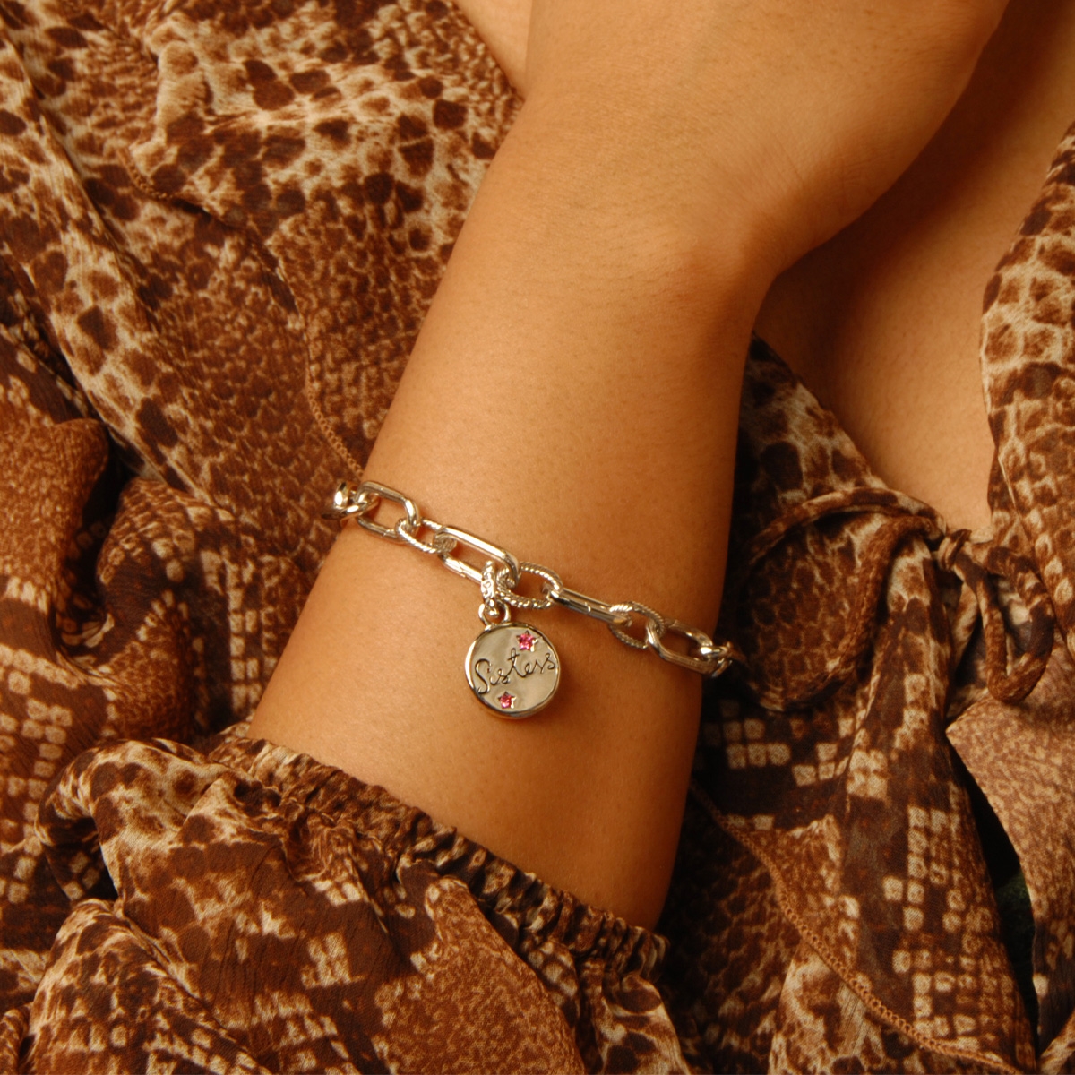 The special bond between sisters is like no other! Flaunting a beautiful rose colored Swarovski crystal and adorned with the word "Sisters", this special charm is the perfect addition to FAC's "I Truly Care" bracelet or "Finer Things" chain. Nickel and lead free jewellery.