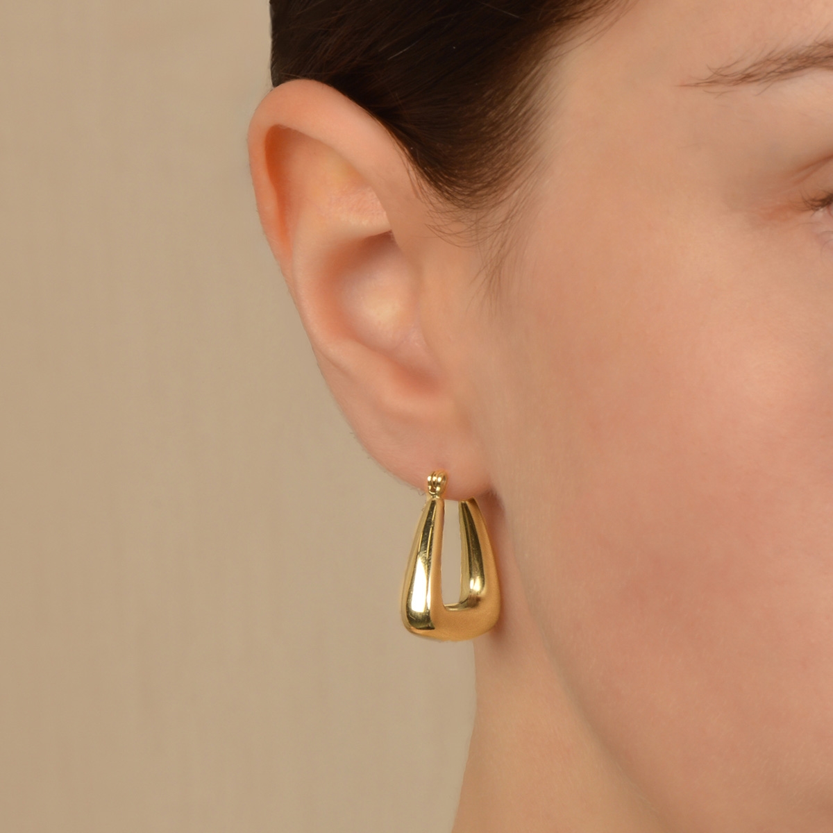 Stylishly chic our "Sleek Finish" earrings boast a rich modern spin on the classic hoop design with their thick geometric lines and smooth metallic finish. Sterling silver posts. Nickel and lead free jewellery.