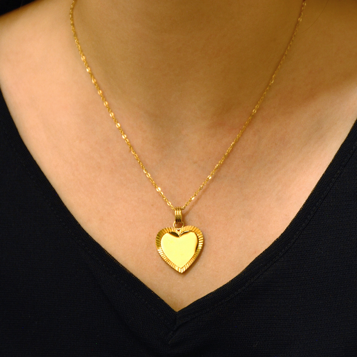 Personalized jewellery is the perfect gift! It's also a lovely way to tell your story with beauty and class. This sentimental stainless steel heart design finished in gleaming gold is timeless. In your orders special instructions section, please include the name or word you would like engraved (max one line and 8 characters) along with the font. For example: Dream, font c. Engraving inclduded in the price. 16" neckpiece with 2" extension. Nickel and lead free jewellery.