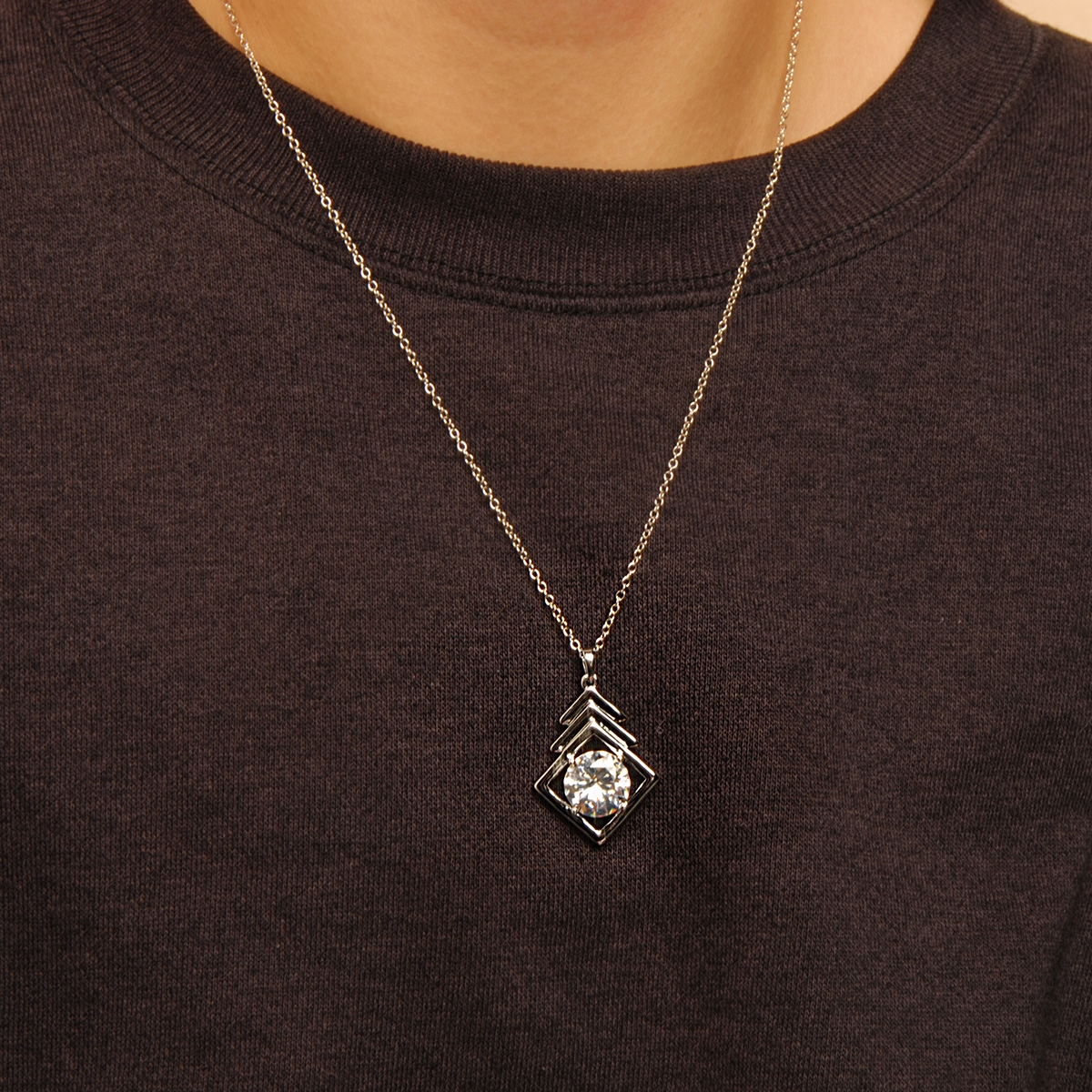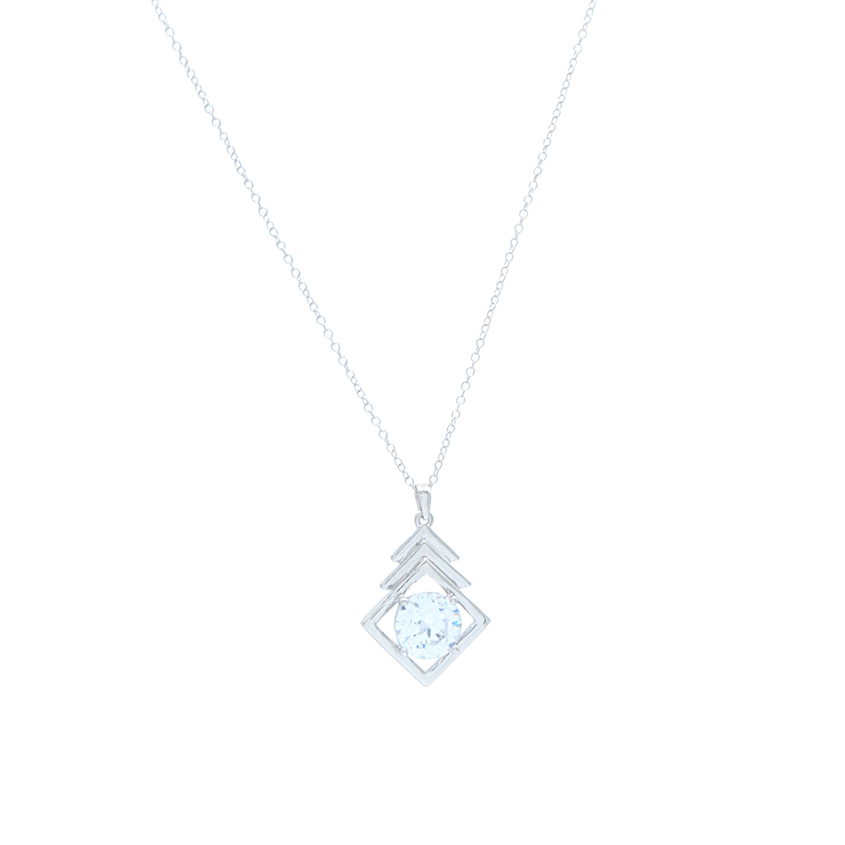 Eye-catchingly cool our "Strikingly Contemporary" neckpiece flaunts a chic geometric pendant centered with a brilliant AAA cubic zirconia on an 18" designer chain to give you a fun and sparkling fashion essential. Nickel and lead free jewellery.