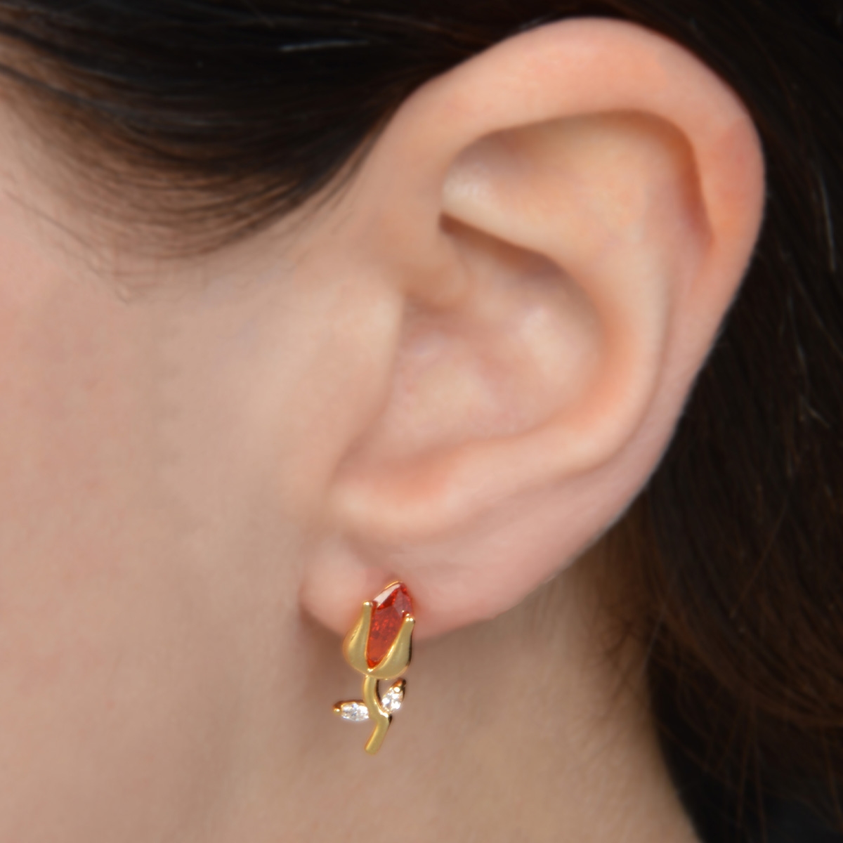 FAC's beautiful "The Meaning Of Love" earrings flaunt a romantic feminine design featuring delicate flowers embellished with red and clear AAA cubic zirconia in a rich gold finish. Sterling silver posts. Nickel and lead free jewellery.