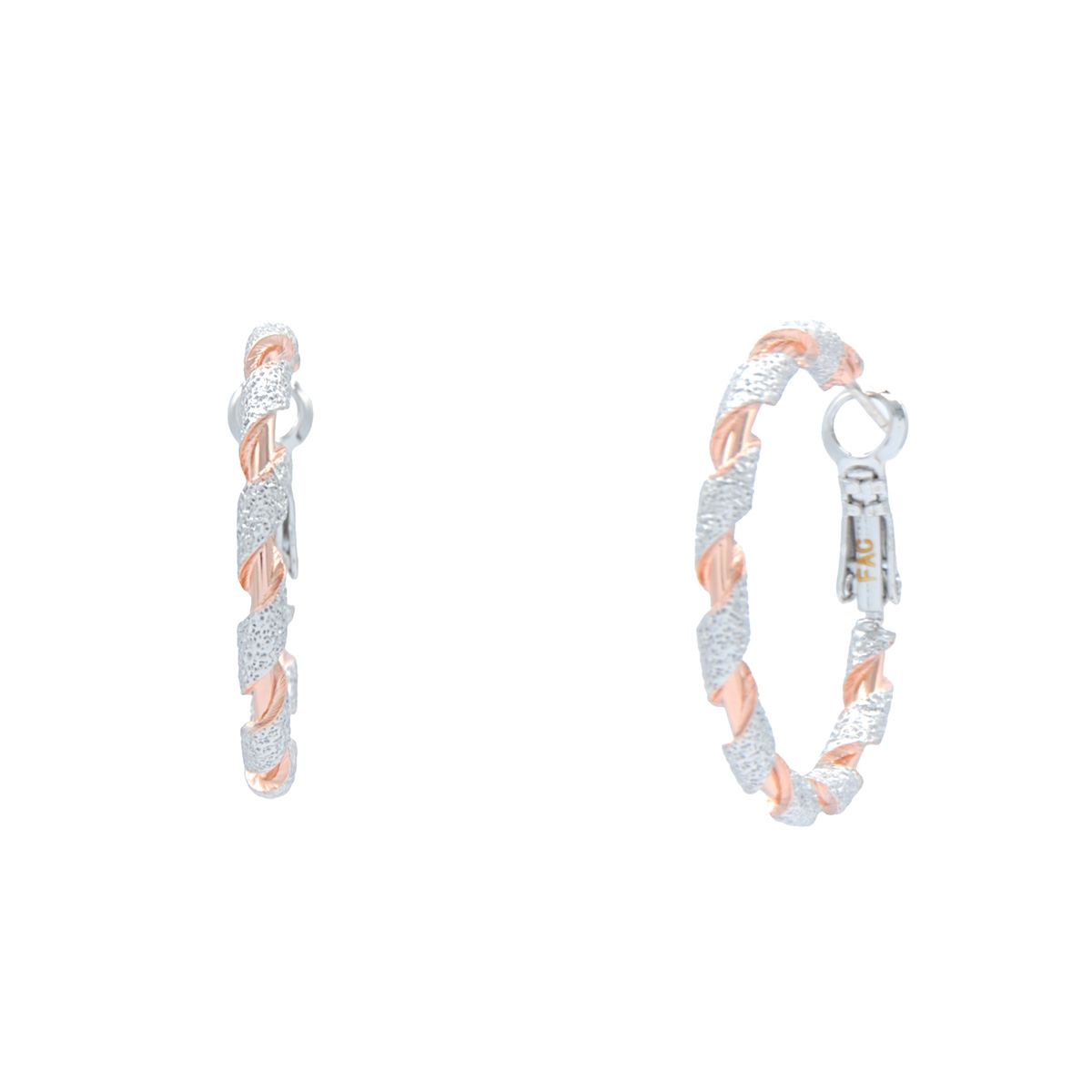 Our delightful “Twisted Splendor” earrings add a touch of style to your look! Featuring a rich two-tone metallic finish, these mid-size hoops are sure to become an everyday favourite! Sterling silver posts. Nickel and lead free jewellery.