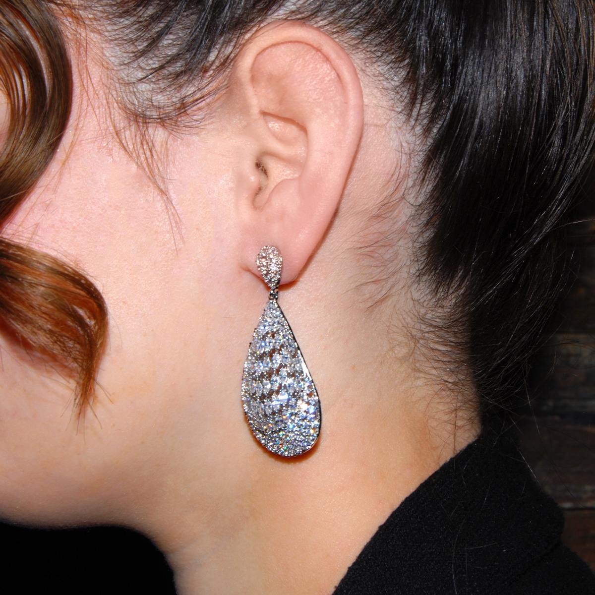 Take your fashion game up a notch when you wear our iconic "Vintage Droplet" earrings showcasing a bold teardrop design studded with dozens of brilliant AAA cubic zirconia. Sterling silver posts. Nickel and lead free jewellery.
