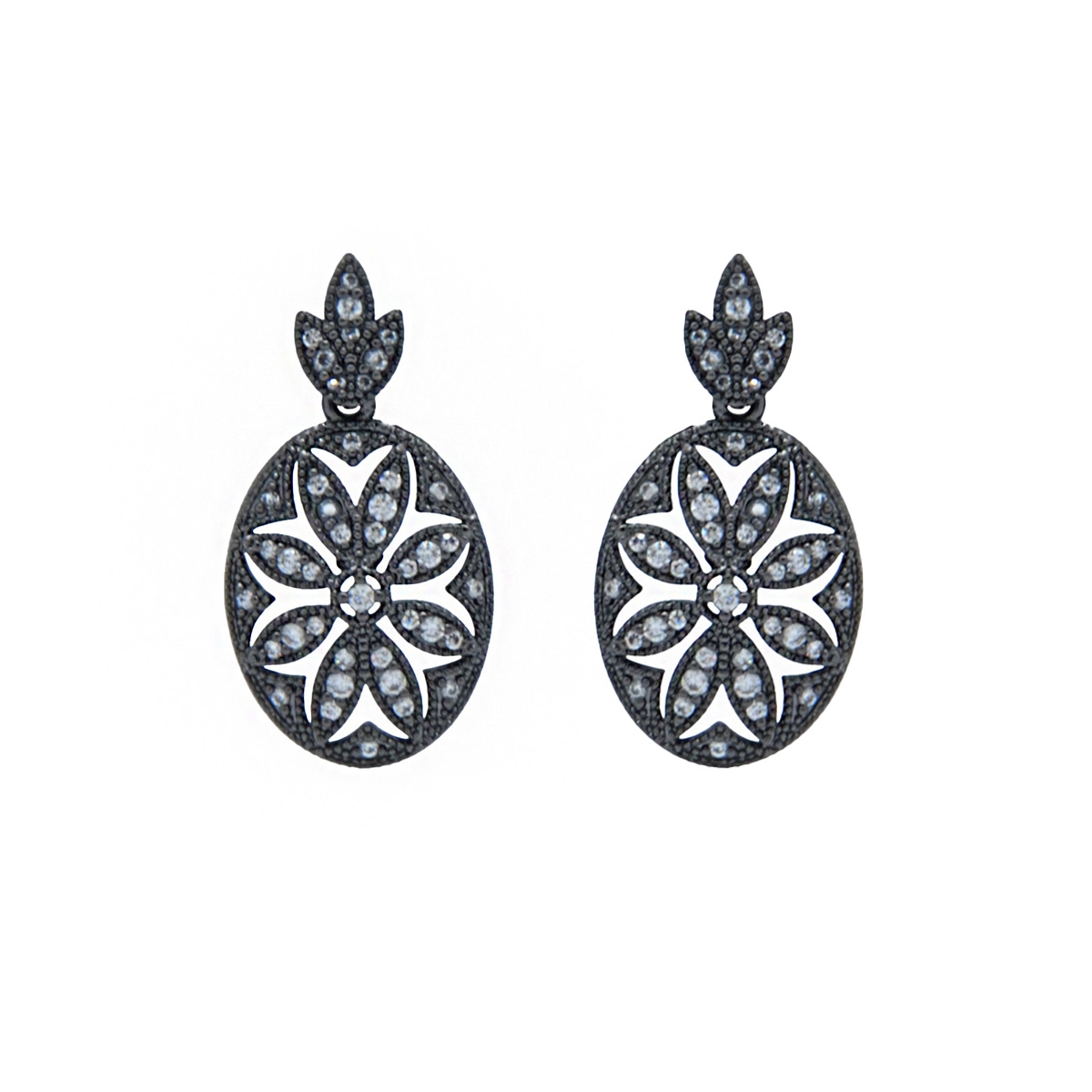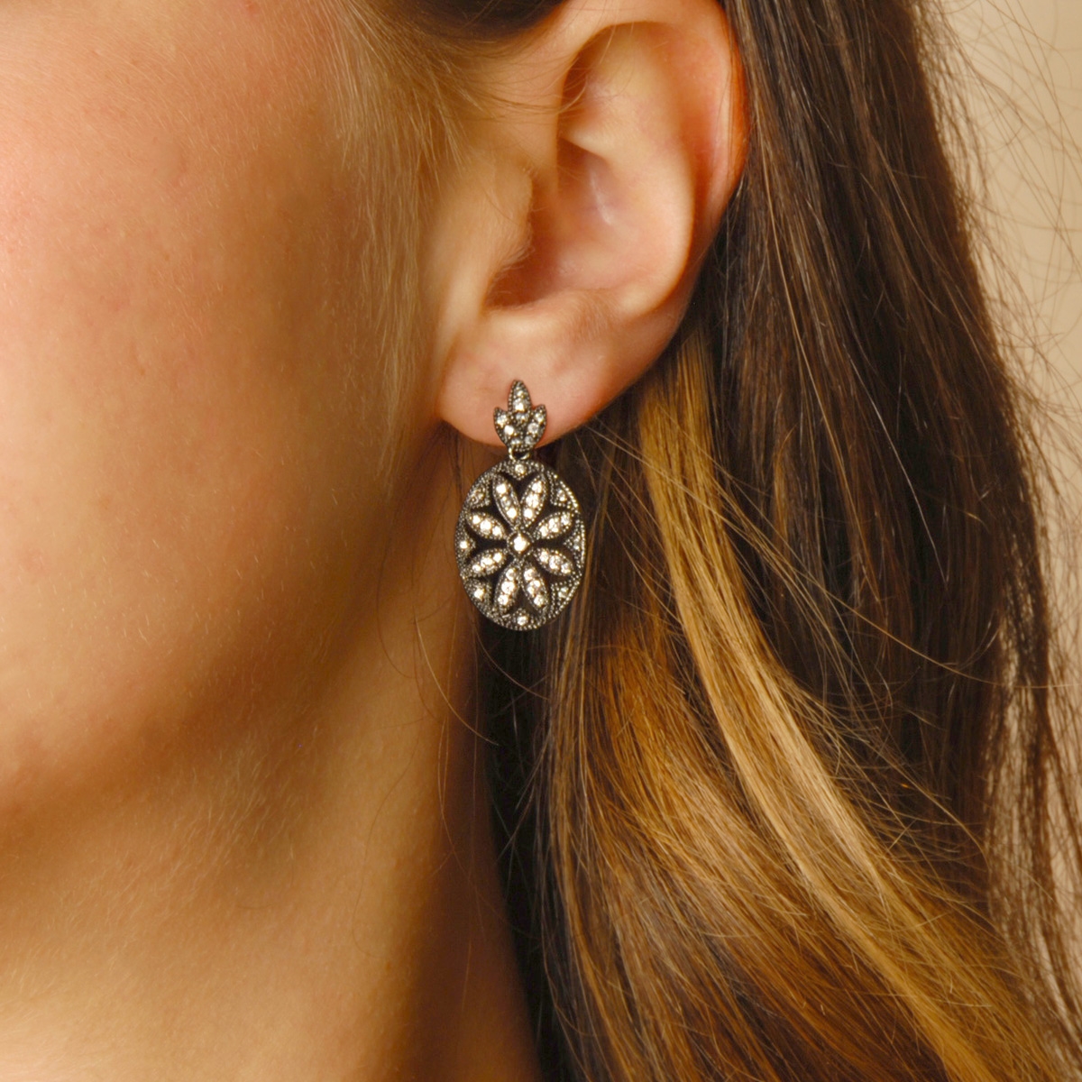 Botanically inspired, our romantic "Vintage Florals" drop earrings are elegantly designed showcasing beautiful AAA cubic zirconia. Sterling silver posts. Nickel and lead free jewellery.