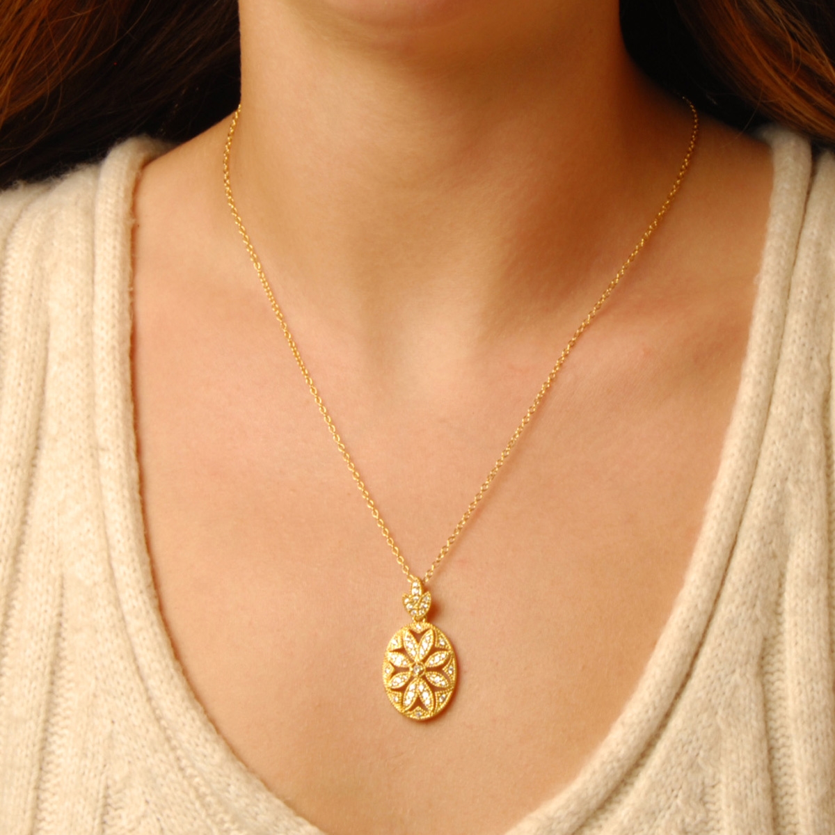 Botanically inspired, our romantic "Vintage Florals" neckpiece is elegantly designed showcasing a beautiful AAA cubic zirconia studded pendant on a sleek 18" designer chain. Nickel and lead free jewellery.