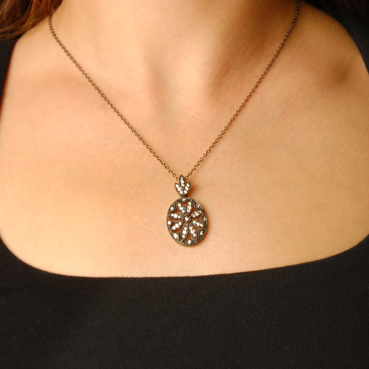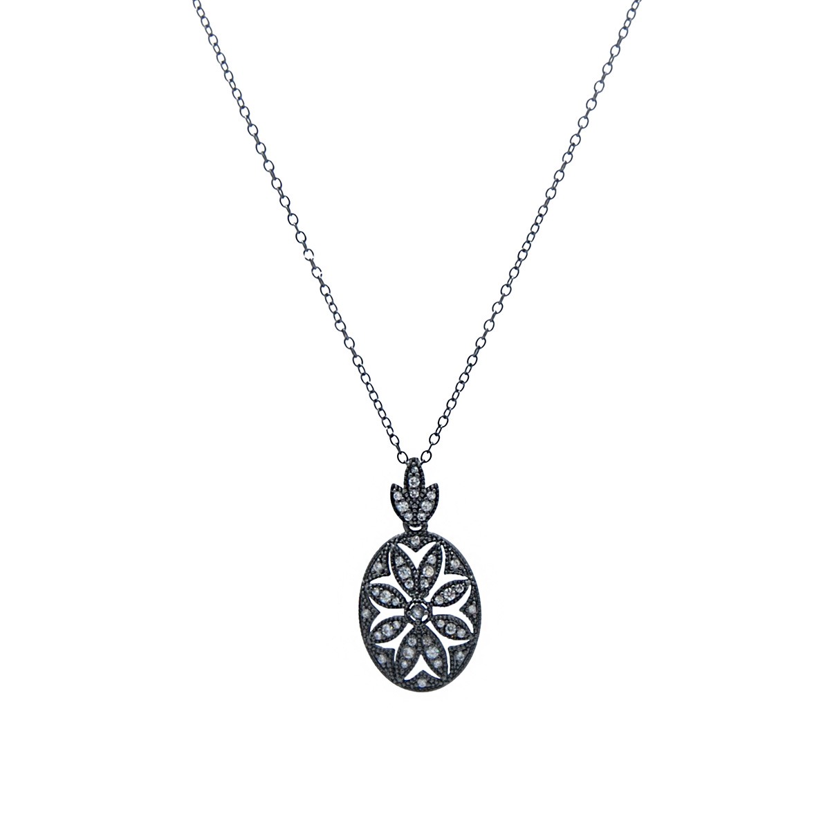 Botanically inspired, our romantic "Vintage Florals" neckpiece is elegantly designed showcasing a beautiful AAA cubic zirconia studded pendant on a sleek 18" designer chain. Nickel and lead free jewellery.