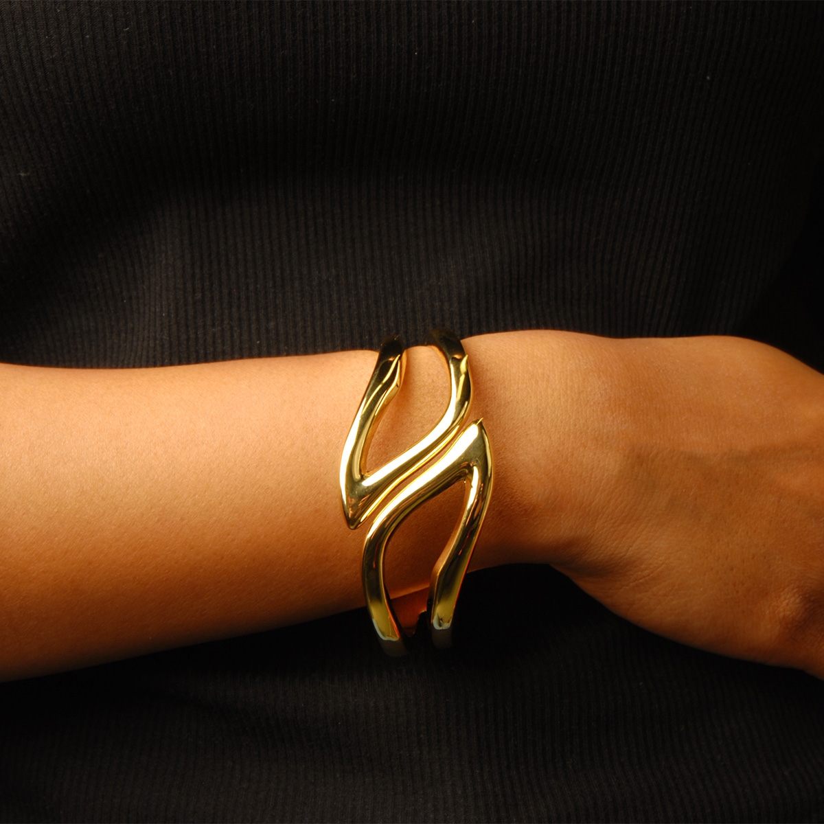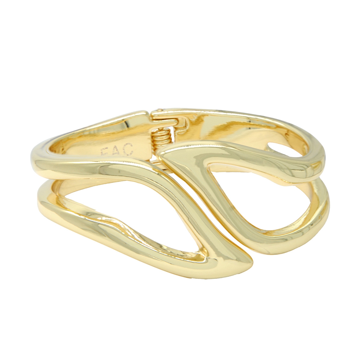 It's time to outshine with chic, original fashion! A smooth metallic finish arcs around this geometric-inspired, hinged cuff bracelet creating the perfect accent for any outfit. Nickel and lead free jewellery.