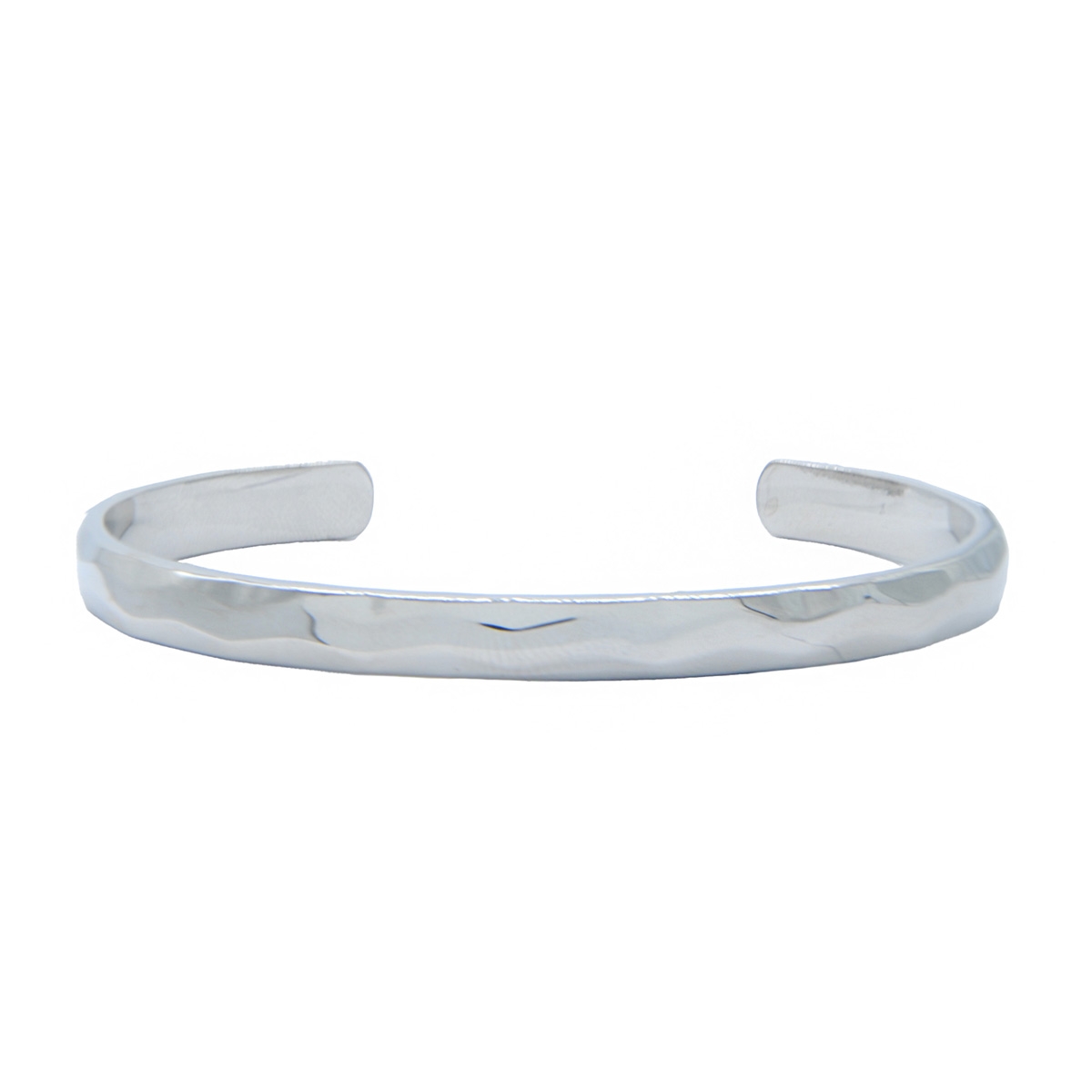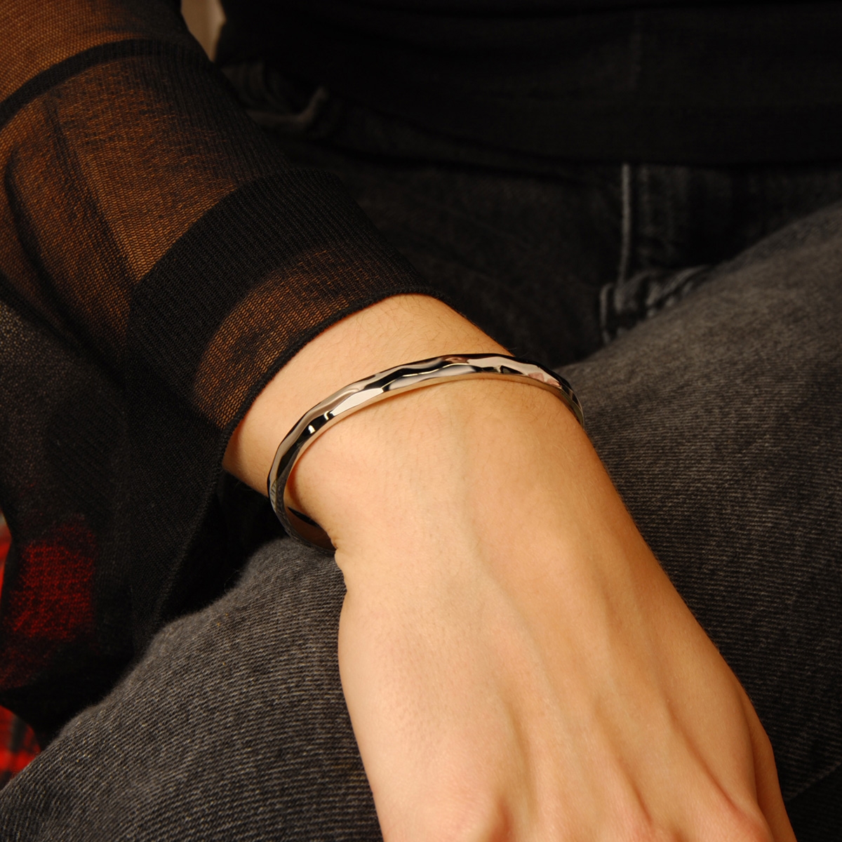 Create a bold new look when you stack our sleek, modern and versatile "Wristy Texture" stainless steel open bangle with a trendy hammered finish. Nickel and lead free jewellery.